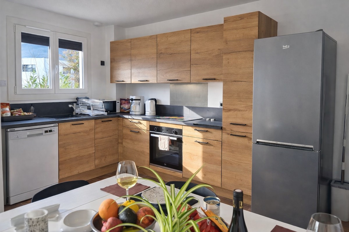 ★ ENCANTO Y CALMA ★ Encantador estudio en la planta baja de una hermosa casa de madera, ubicada en Échenevex, entre Gex y Saint-Genis-Pouilly. Totalmente renovado y equipado: cocina completa, Wi-Fi, lavadora, estacionamiento gratuito. Ideal para 1 o 2 personas, muy cerca del CERN y de la frontera suiza. ¡Un entorno tranquilo y auténtico para una estadía profesional o relajante!