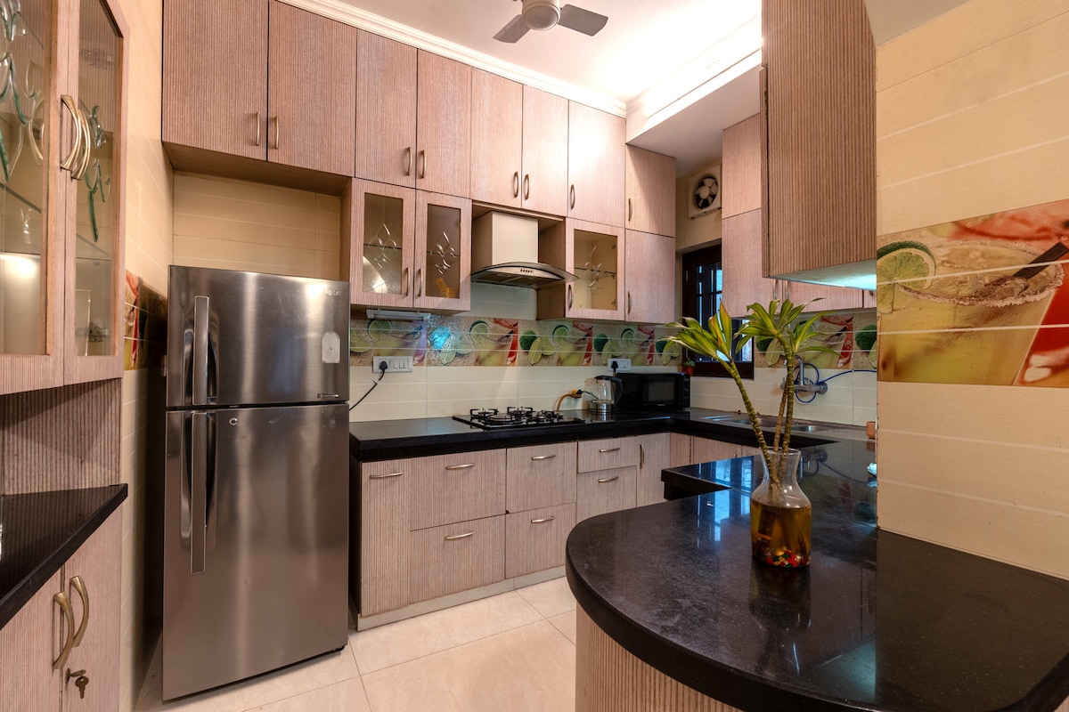 Disfruta de la comodidad y el estilo en un santuario diseñado para el trabajo y la relajación. Descansa en un colchón ortopédico Wakefit y disfruta de una cálida iluminación ambiental. Mantén la productividad con un espacio de trabajo ergonómico y relájate con dos televisores de 42 pulgadas. El baño adjunto ofrece artículos de tocador de primera calidad y un espejo de tocador iluminado. Cocina sin esfuerzo en una cocina totalmente equipada. Relájate en el sofá en un espacio donde la paz, la productividad y el estilo de vida se mezclan a la perfección.