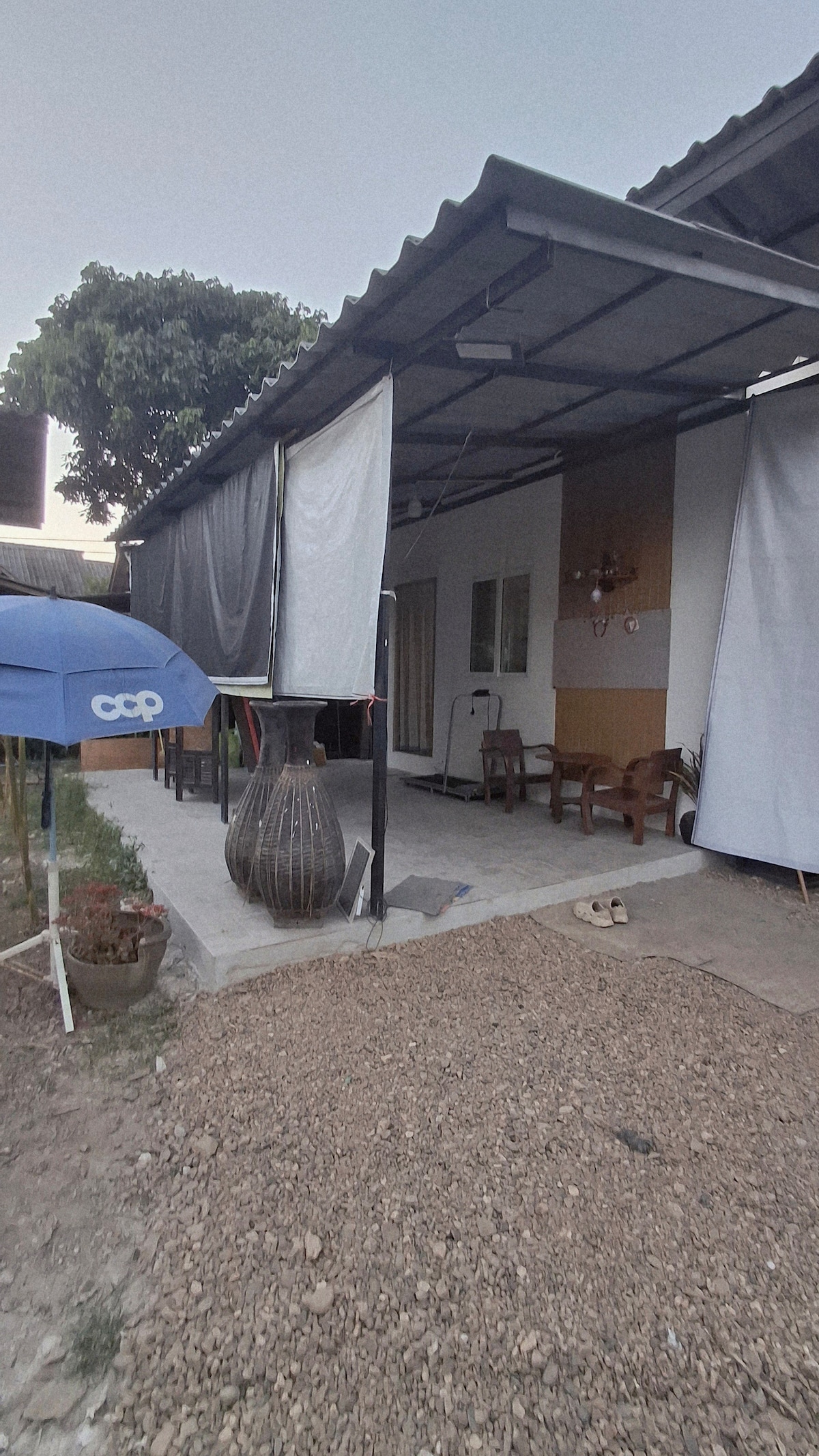 Casa entera, casa rural con 3 dormitorios (3 dobles, 1 individual), 2 baños y gran balcón privado con vistas a la montaña. Cada casa es tranquila y tiene entrada privada. A solo 5 minutos a pie de la ciudad principal de Chiang Dao. Amplia tierra donde puedes relajarte y descansar en la naturaleza. Disfruta de las impresionantes vistas de la montaña Chiang Dao desde tu balcón, pero a pocos minutos a pie se encuentra el centro de esta pequeña ciudad donde puedes disfrutar de cafés, comida callejera y restaurantes locales.