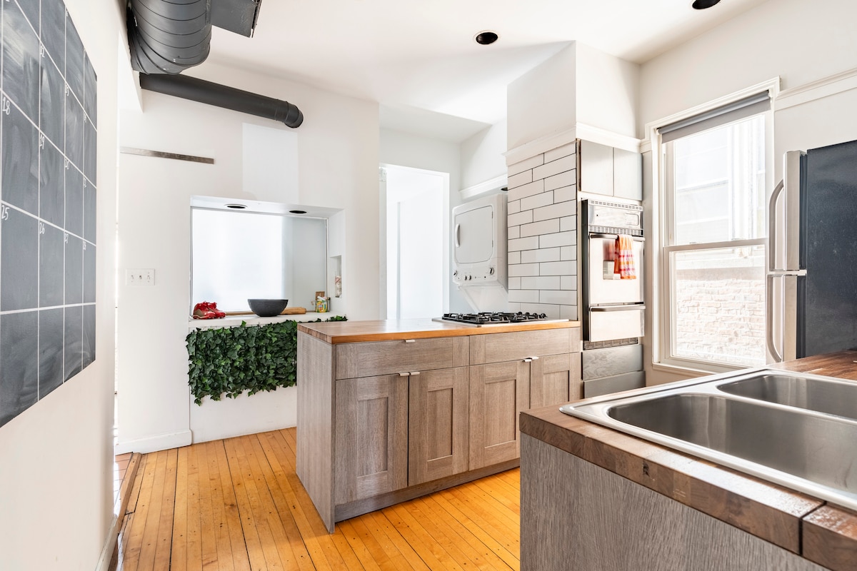 Bienvenido a nuestro acogedor departamento de Chicago en el histórico barrio de Bridgeport. Esta cómoda unidad de 2 dormitorios y 1 baño está en el primer piso de un clásico de dos pisos, que ofrece un fácil acceso y una estancia relajante. A pocos pasos de una parada de autobús y a solo 5 minutos en auto de la línea naranja de CTA, llegar al centro y a la ciudad es sencillo. Cerca de Pilsen y Chinatown. Por seguridad, cuatro cámaras Ring exteriores monitorean solo las áreas exteriores. Se requiere identificación para todos los huéspedes principales.