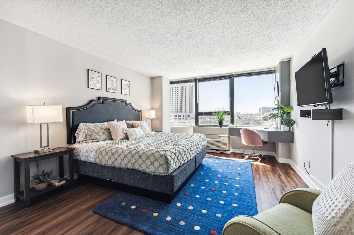 Siéntete como en casa, relájate y disfruta de los servicios que te mereces cuando vienes a Chicago. A los huéspedes les encanta nuestro alojamiento porque: - Estás a SEGUNDOS del LAGO y de la MAGNIFICENT MILE - A unos pasos del John Hancock - Gimnasio en el sótano - Ubicación increíble con muchas tiendas y restaurantes cerca - WIFI RÁPIDO. - CAMA KING. - Encantador edificio vintage de Chicago Caminar a casi cualquier atracción en el centro de Chicago. Lee nuestras preguntas frecuentes para resolver cualquier duda antes de reservar.
