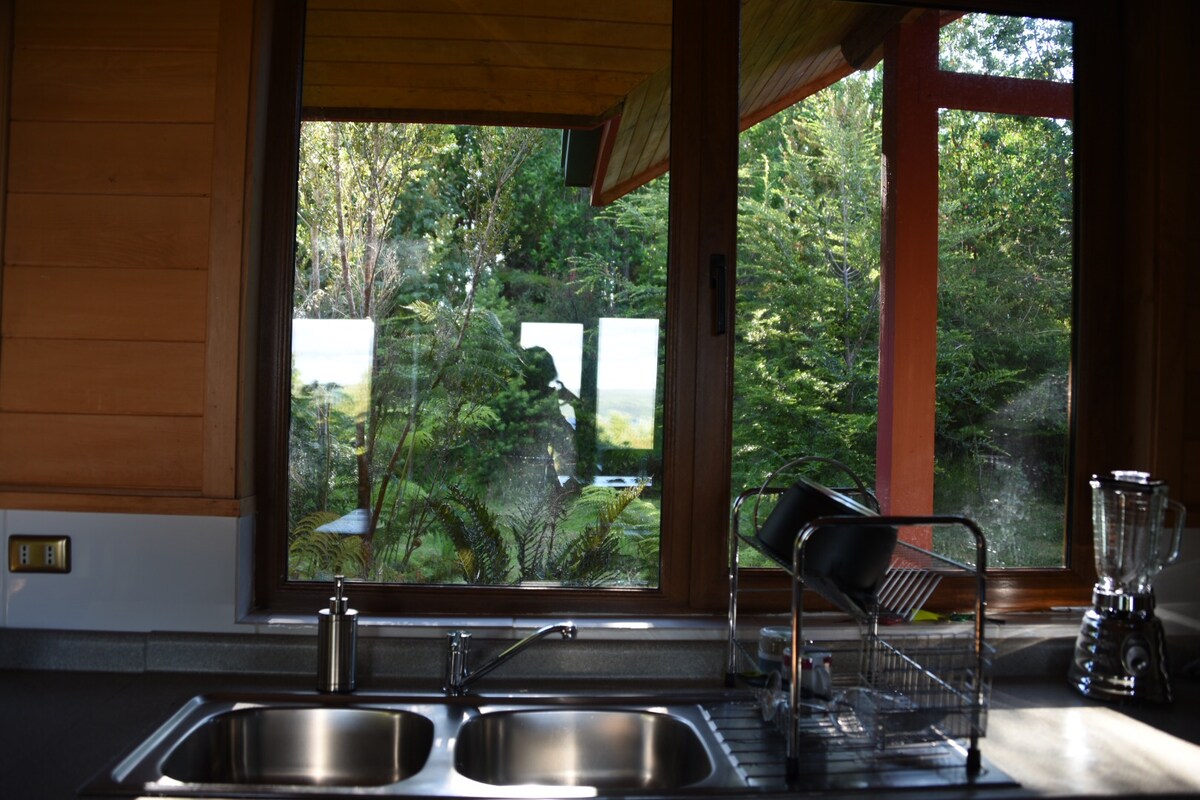Escápate a la montaña y conecta con lo esencial en nuestra cabaña rodeada de bosque nativo. Un espacio diseñado para el descanso, la seguridad y el silencio absoluto. Comodidades: Completamente equipada para 4 personas. Espacios: Amplio patio para respirar aire puro y terraza privada. Relajo Total: Contamos con tinaja disponible (valor adicional de $45.000) para mirar las estrellas. Ubicación: Sector residencial de montaña, a solo 6 km de la Plaza de Castro.