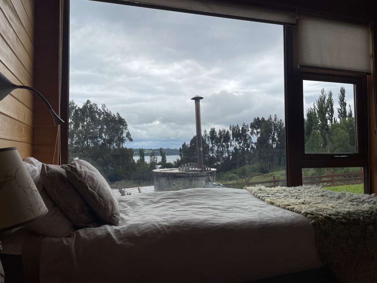 Maravillosa Cabaña Frente al Mar en un entorno Campestre Donde podrás Descansar y disfrutar inmerso en un paisaje Natural, Ven y observa a las Toninas (Delfín Chileno),Cisnes Cuello Negro , Patos silvestres, Colibrí, Chucao, Queltehues y mas de 30 Especies de aves. Nuestro paraíso acoge especies migratorias como los Flamencos ( desde Abril a Agosto) Caminatas por la playa y vistas Hermosas garantizadas!! A 20 min. de Castro y Dalcahue ya 15 minutos del Aeropuerto .