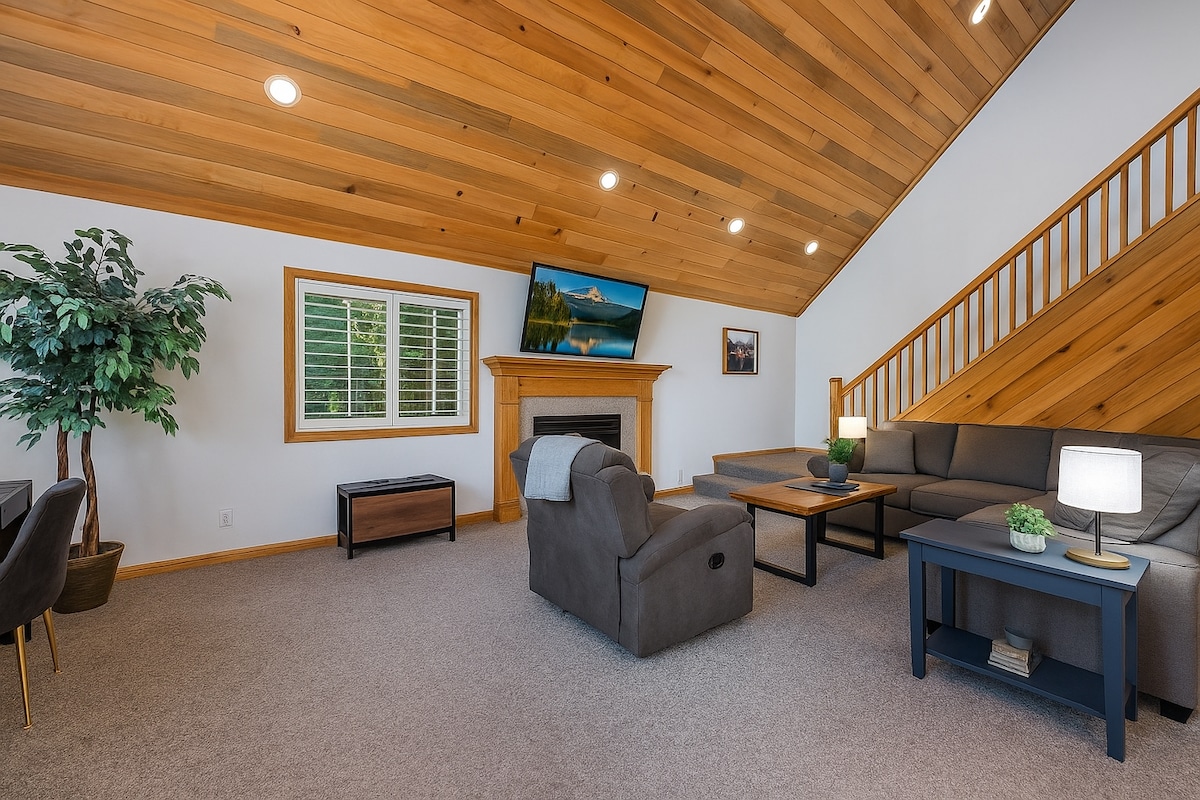Cabaña más nueva, perfecta para familias y a solo 5-10 minutos en coche del corazón de la ciudad y del lago. Esta belleza cuenta con 4 lujosos dormitorios que incluyen una suite principal y una junior, 3,5 baños (uno con bañera), sala de estar con chimenea de gas, cocina grande equipada y también un LOFT para el lugar de reunión ideal. Los servicios adicionales incluyen una nevera para vinos, cafetera, sonido envolvente, lavandería surtida, patio al aire libre y chimenea en el patio trasero (de temporada). ¡El acceso al garaje y la gran entrada también son ventajas!