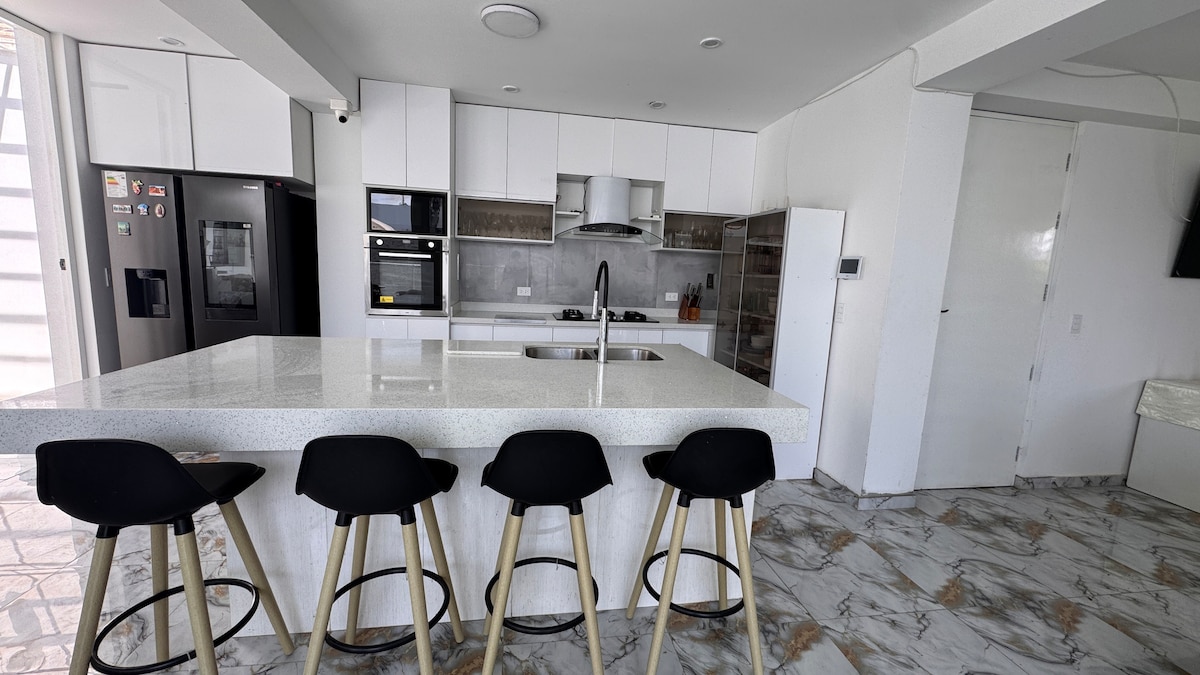 Relax with the whole family and friends at this stylish and peaceful place to stay. The house is perfect for large gatherings, bring your group and create memories, enjoy the warm weather that Chincha Baja offers all year around. The house offers: A deep pool with waterfall and shallow area designed for younger children. Roof covered deck. Top of the line BBQ Grill. Second floor balconies for amazing sunset view. Walk a few steps to the beach. It’s just amazing 🤩