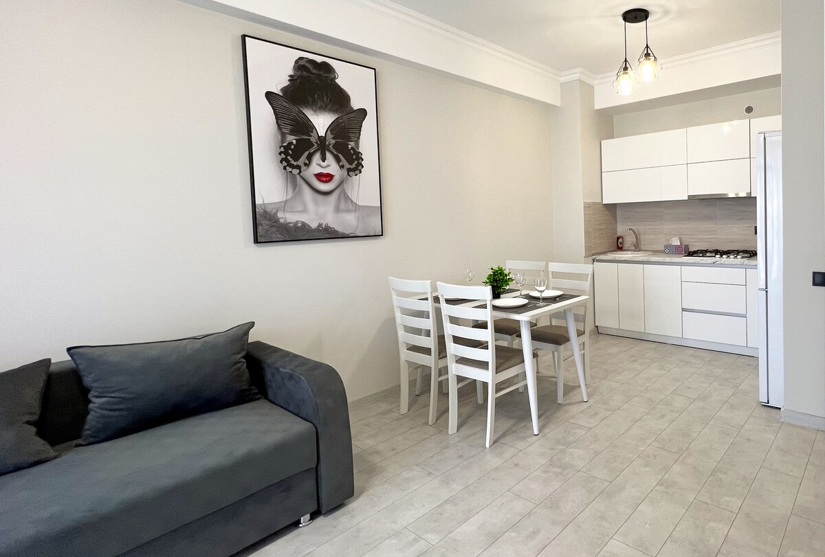 Orange Nest is a modern-designed apartment, created for enjoyable and comfortable stays in Chișinău. ✔ 2 separate bedrooms with large beds and comfortable mattresses ✔ Heated floors in the kitchen, living room, and bathroom ✔ Automatic heating – always the perfect temperature ✔ Air conditioning (2 units) ✔ Private underground parking – safe and secure for your car Arena Chișinău is very close — ideal for guests attending concerts or events.