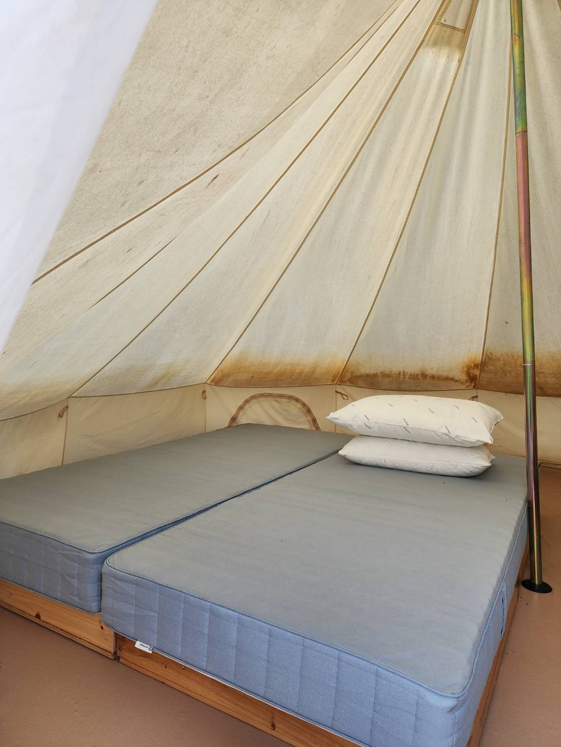 Un apartamento para acampar con aire acondicionado, un bonito colchón, almohadas de plumón de ganso con baño privado.