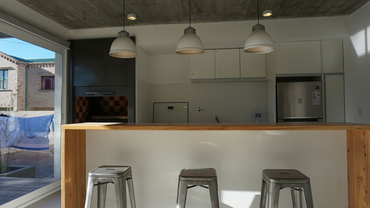 Luminoso loft; cálido ambiente informal y familiar. Sommier matrimonial en primer nivel y diván doble cama (cama carrito) en el estar. Patio privado con parrilla, estacionamiento interno descubierto Piscina exterior climatizada de temporada (mediados diciembre a mediados de marzo)