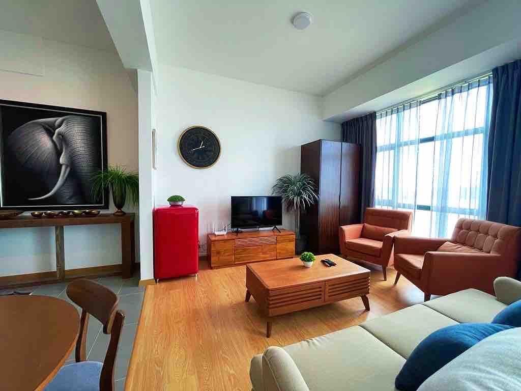 Este apartamento estudio «hyggelig» cuenta con una sala de estar y un dormitorio de concepto abierto con una cama «queen», puertas correderas a un balcón con impresionantes vistas al mar de China Meridional y un pequeño dormitorio individual separado. Una cocina bien equipada (no se permite cocinar) y un baño moderno proporcionan comodidad diaria. Los detalles incluyen una cesta de picnic para las salidas a la playa y una esterilla de yoga para estirarse tranquilamente. Ideal para parejas o familias pequeñas que buscan una escapada acogedora y relajante junto al mar con un encanto único 🐚🌊🌴