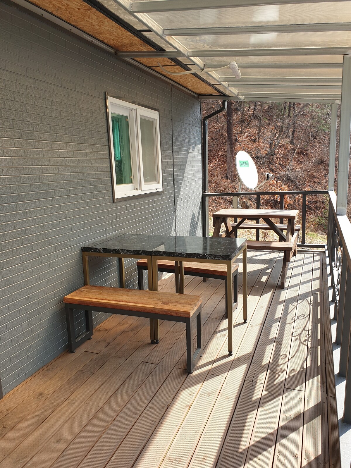 Es una pensión de cabaña de madera de dos pisos con ático. Uso exclusivo de todo el patio. Es una pensión justo en frente del “valle” en Myeongdal-ri, Seojeong-myeon, Yangpyeong. ¡3 segundos del valle! Se puede hacer una barbacoa y fogata (leña básica incluida) mientras se escucha el sonido del agua. Una cabaña frente a la cascada de primer grado en el valle de Myeongdal. Es una cabaña de madera pequeña pero privada, con un ático, llena de emociones que a los niños también les gusta. Si vienes con tu pareja, tu mejor amigo o tus padres, la satisfacción es máxima. Se ha configurado para que puedan utilizarlo hasta 4 personas. Debido a problemas de espacio y limpieza, no se admiten mascotas. Puedes venir y usar el fuego y el equipo de barbacoa de forma gratuita. Es una roca fragmentada, así que si disfrutas de la acampada, trae tu equipo. Si tiene dificultades para encender el fuego o necesita comprar carbón, puede hacerlo por una tarifa. Te enviaremos instrucciones detalladas cuando confirmes tu reserva. 11 km desde la IC de Seojeong, 15-20 minutos en coche normalmente. Si viene de Seúl, gire a la derecha en Seojeong IC (puede ignorarlo si el navegador le dice que gire a la izquierda).