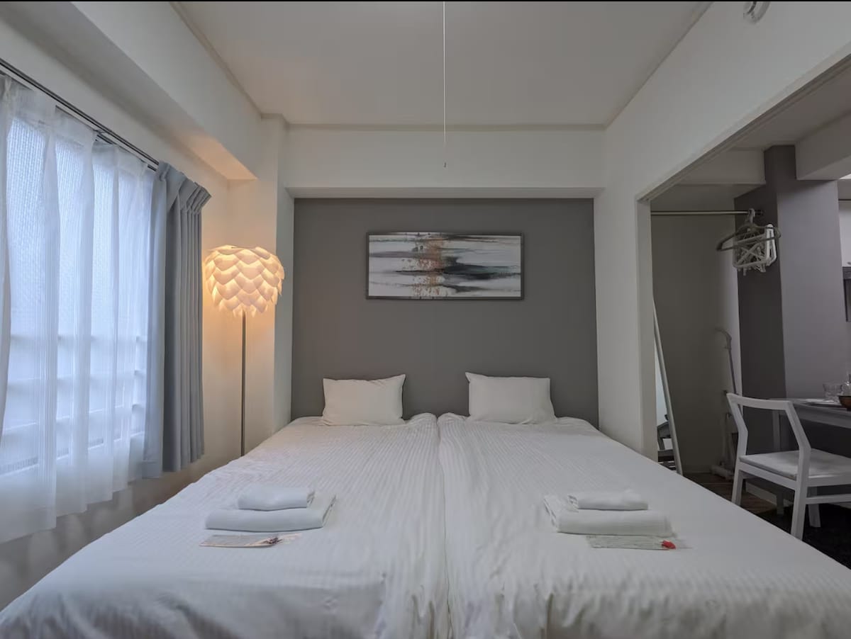 Una base relajante para familias que viajan por Japón. A 15 minutos a pie de la estación Shin-Kobe (Shinkansen). Osaka ~30 min, Kioto ~45 min, Tokio ~3 horas. A poca distancia a pie del centro de Sannomiya, pero tranquilo por la noche. Edificio de 2 años; todos los muebles y electrodomésticos son nuevos y se mantienen limpios. Mercado local a 3 minutos a pie: cocina comidas adaptadas a tu familia. Disfruten juntos en el salón; los dormitorios separados permiten que cada uno duerma a su ritmo