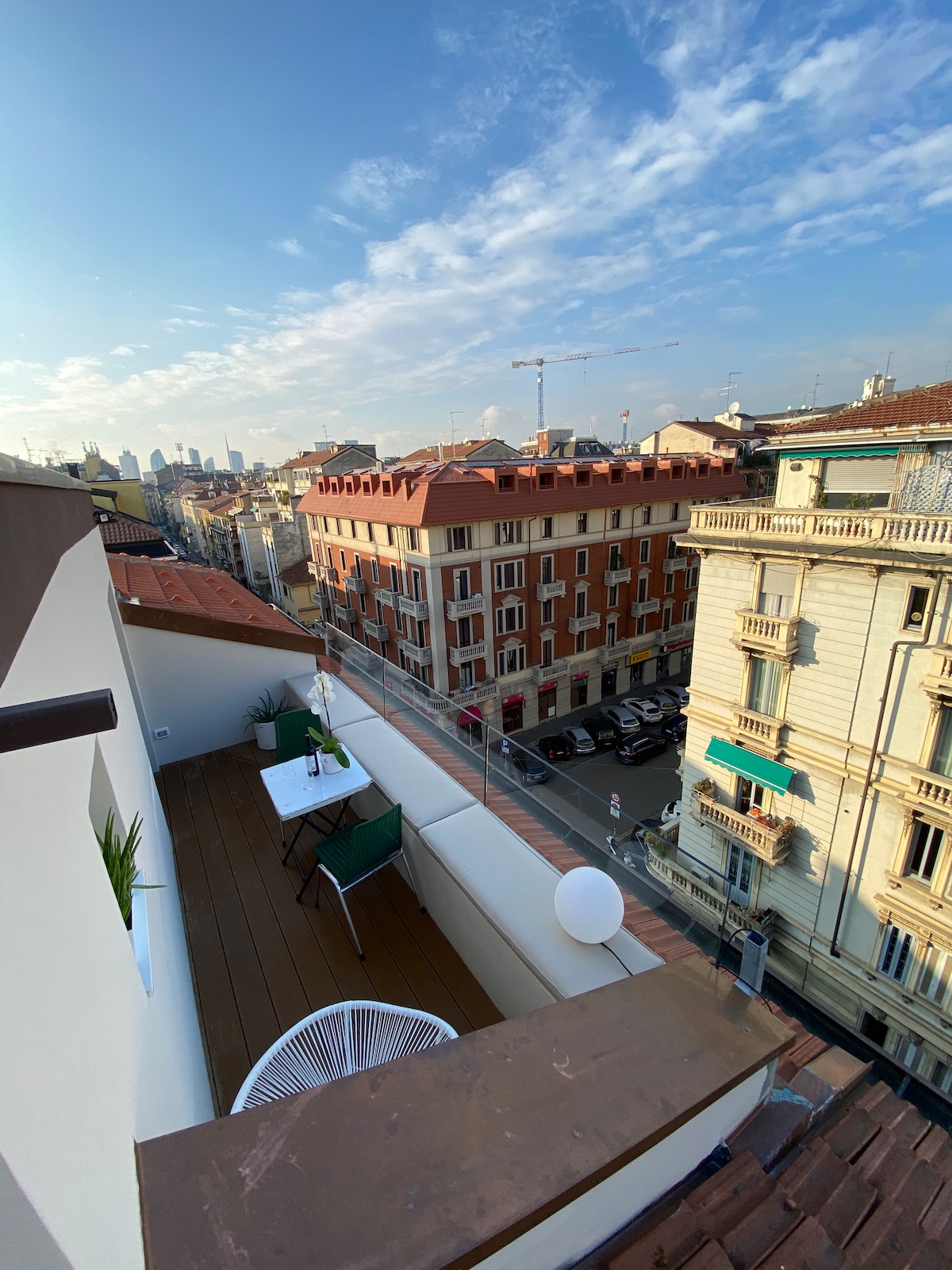 Increíble ático en el centro de la ciudad, Porta Venezia. El apartamento consta de salón con terraza con vistas al Duomo, cocina americana, sofá cama y TV inteligente, baño completo y dormitorio. El alojamiento está equipado con aire acondicionado e internet wifi rápido. A solo 5 minutos a pie de la parada de metro M4 Dateo. Porta Venezia está a 5 minutos y la estación central está a unos 15 minutos a pie. Quinto piso con ascensor que llega al cuarto, hay que subir 3 tramos de escaleras.