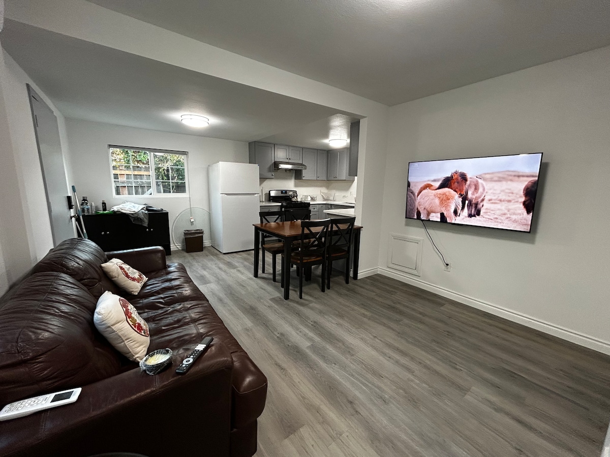New construction 2 Bed 1 Bath Modern Hidden Gem! This Guesthouse has its own private yard, entrance & driveway. At just under 600sqft, No stone was left un-turned when Designing this space. This open concept Home features a living area with a Sleeper Sofa, 50" Roku TV, 4 chair dining table, A Remote controlled AC & Heat system. Full Kitchen with Microwave, Oven, Fridge & Washer/Dryer. Full Bathroom with Tub & Shower. 2 bedrooms, 1 with a queen bed & the other w 2 twin beds.