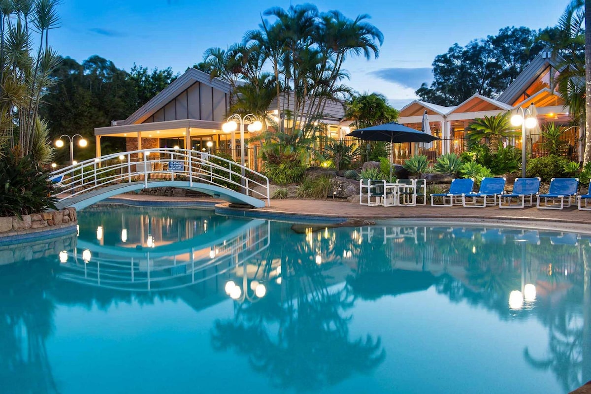 Ubicada en el Tropical Annuka Beach Resort, esta villa elegantemente renovada está a solo 150 metros de Diggers Beach. Es perfecta para una escapada familiar, parejas o amigos que viajan juntos. Esta elegante villa con aire acondicionado es lujosa, con camas tamaño king, una bañera de hidromasaje, dos baños, una cocina totalmente equipada con cafetera y electrodomésticos de calidad. Relájate después de pasar el día explorando la costa de Coffs con una piscina privada a solo 50 metros de la villa, tu propio wifi privado y Netflix. ¡A disfrutar!