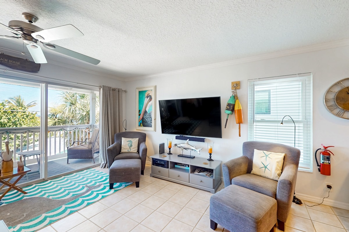 Gulf-view condo w/ sunsets, WiFi & steps to beach