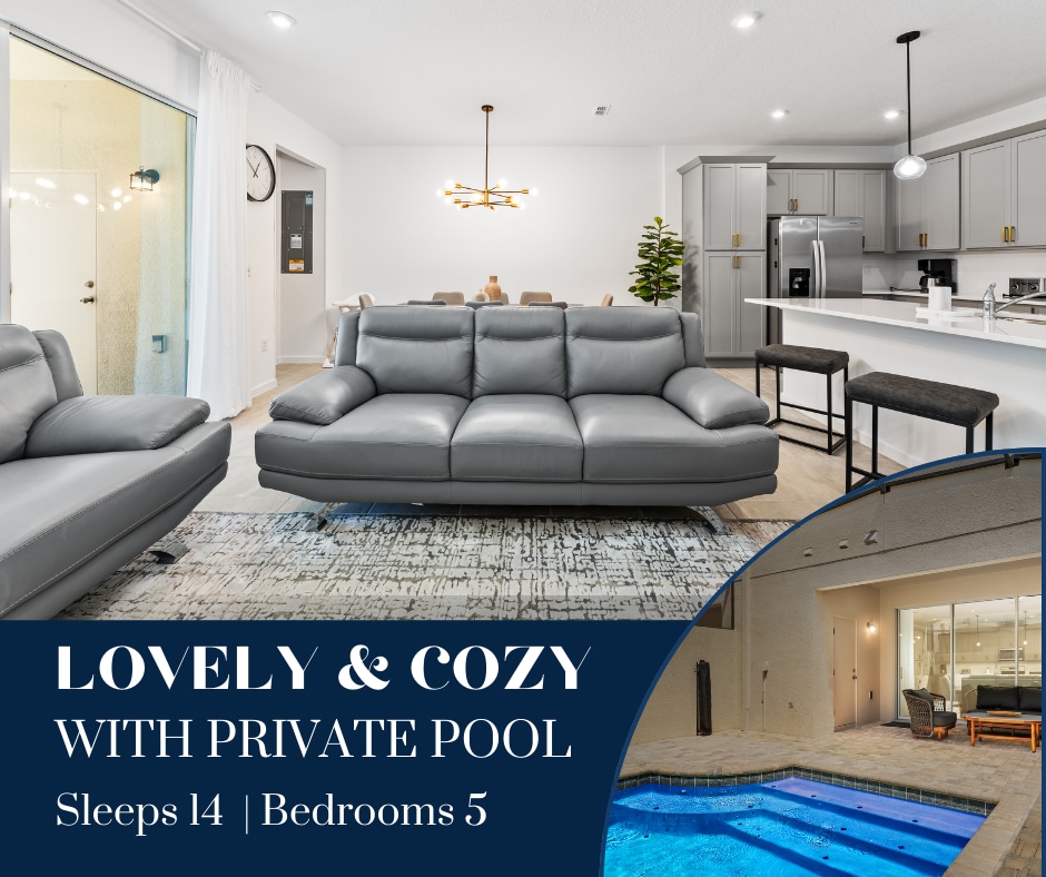 Este nuevo refugio de 4 dormitorios y 3 baños ofrece la combinación ideal de elegancia, espacio y comodidad. ✨ Lo que te encantará: • Espacios abiertos • Cocina gourmet totalmente equipada • Dormitorios de lujo con ropa de cama de primera calidad • 3 baños completos y relucientes • Wifi de alta velocidad y televisores inteligentes. • Lavandería en la unidad y aparcamiento gratuito Tanto si estás planeando diversión en familia en los parques temáticos como si buscas un refugio tranquilo para desconectar, esta casa ofrece lo mejor de ambos mundos. Perfecto para familias, grupos o viajeros de negocios.
