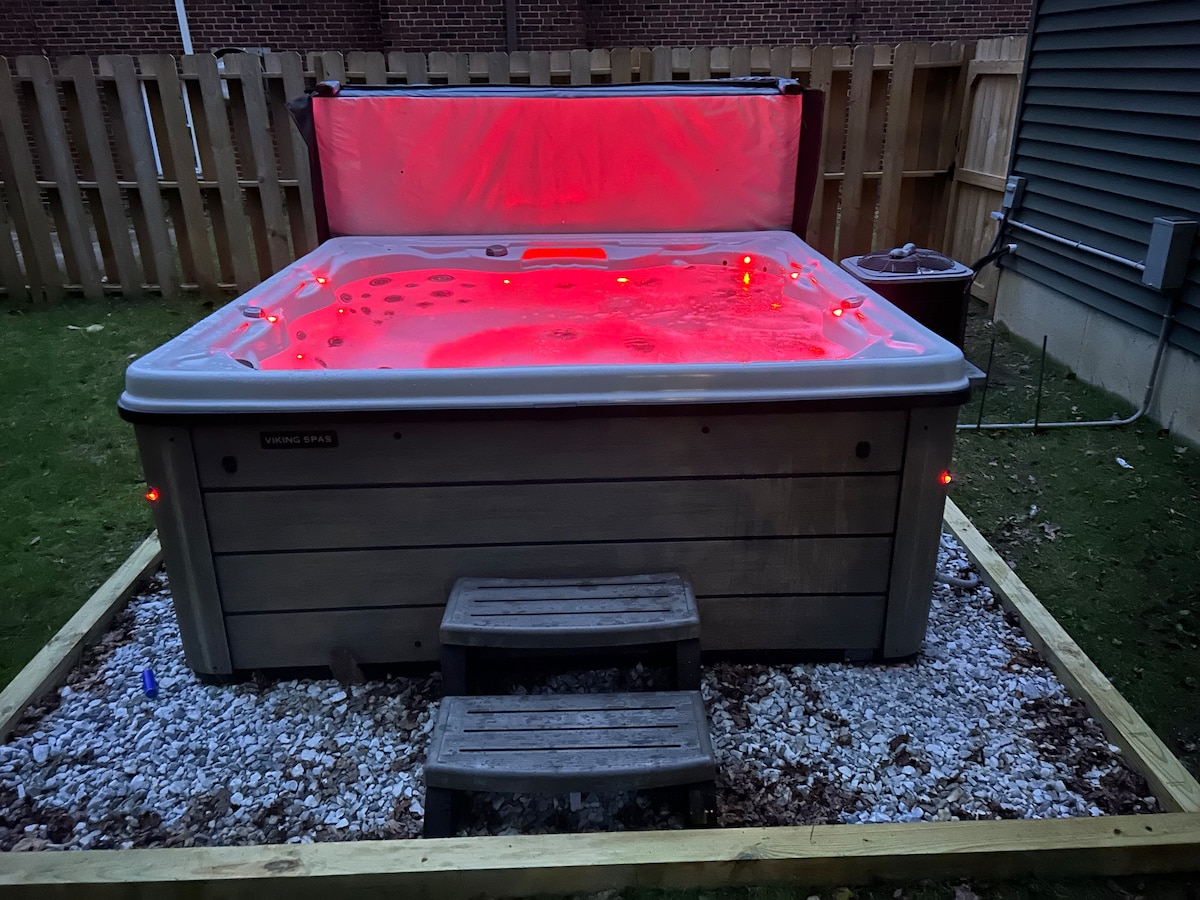 Moderno refugio de 3 habitaciones con jacuzzi, fogata y juegos
