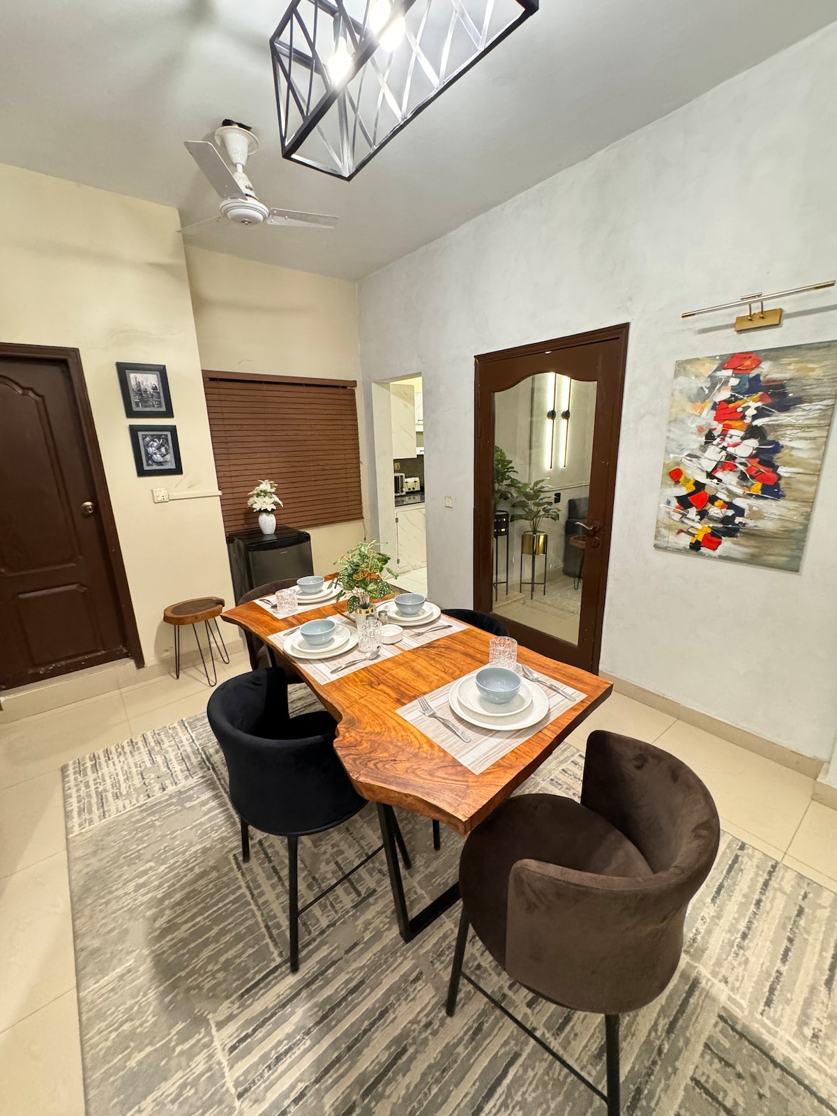 Descubre tu escapada en nuestro apartamento de 3 dormitorios y 3 baños bellamente renovado en el vibrante Clifton. El edificio tiene un encanto costero más antiguo, pero el interior es elegante, moderno y acogedor. Estamos a pocos minutos del parque Ibn-e-Qasim, Sea View Beach y Dolmen Mall. Si prefieres exteriores contemporáneos, un hotel puede ser una mejor opción para ti. Sin embargo, si buscas un refugio tranquilo donde puedas disfrutar de una mezcla de comodidad y carácter, nuestro apartamento te espera. ¡Reserva tu estadía hoy mismo!