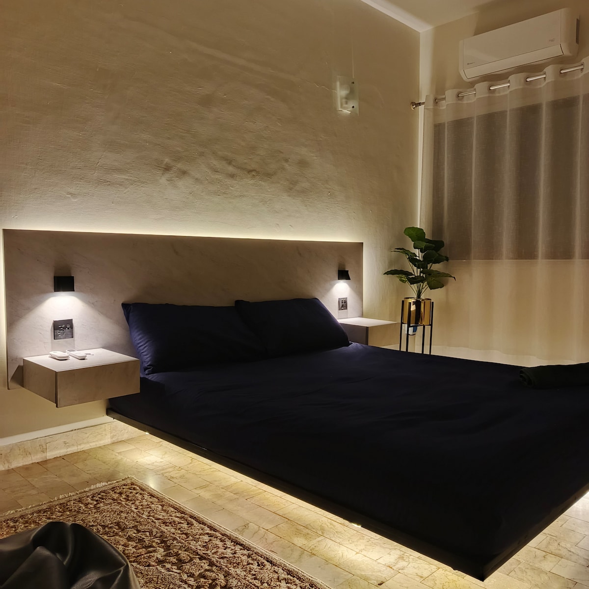 Este apartamento estudio completo tiene un dormitorio, una sala de estar y una cocina con comedor ubicado en DHA Phase VI Small Bukhari en el primer piso tiene todo lo que necesitas. Sumérgete en la cómoda cama tamaño queen, disfruta de la música en el sistema de sonido JBL o relájate en el salón en el sofá de terciopelo. Con dos baños, no hay que esperar. Cocina en la elegante cocina y luego disfruta de la comida bajo el resplandor de la lámpara de arco junto a una impresionante pintura maestra. Además, disfruta de una cesta de bienvenida, agua y bebidas frías de cortesía.