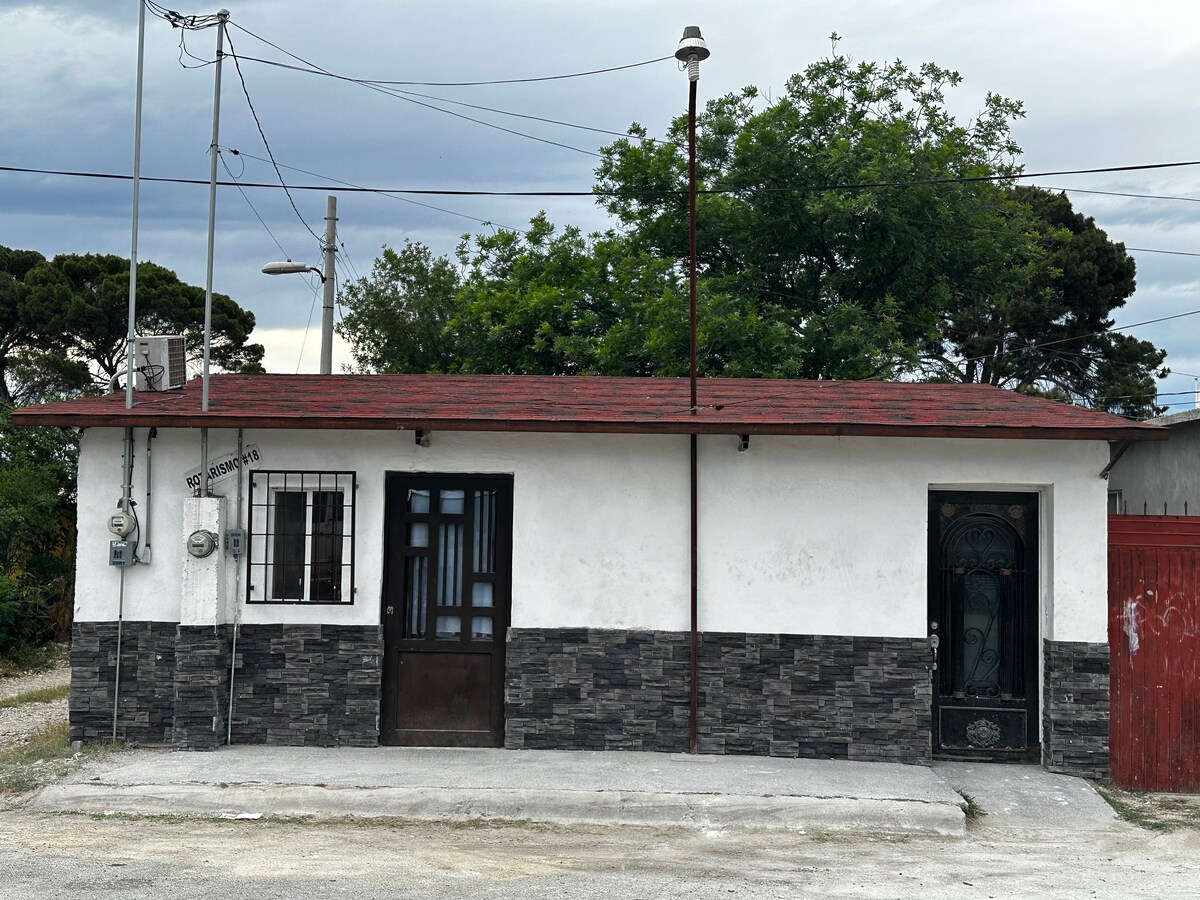 Si buscas un lugar acogedor, tranquilo y con un toque rústico, esta cabaña es perfecta para ti. Ubicada en la exclusiva Colonia Americana en Nueva Rosita, es ideal para descansar, reconectar y disfrutar de una estancia única. Cuenta con 3 camas: • 1 matrimonial • 2 individuales El ambiente es hogareño, techos de madera y tonos cálidos que le dan un toque rústico. Además, la ubicación es excelente: una zona tranquila y segura, cerca de tiendas, restaurantes y todo lo que puedas necesitar.