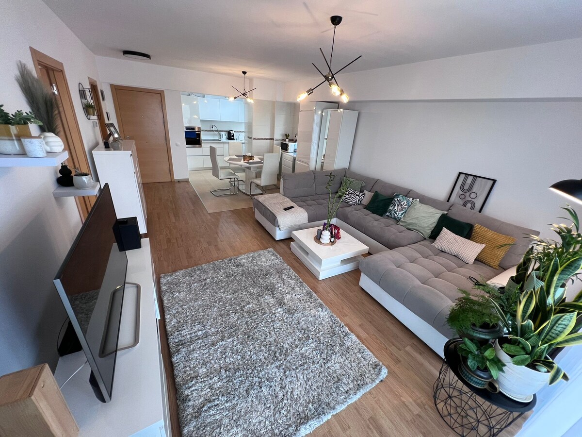 ¡Bienvenido! Nuestro moderno apartamento, ubicado a 5 minutos de las estaciones de autobuses m26 y m21, ofrece comodidad y elegancia en una zona tranquila. El autobús m26 conecta directamente con el Parque Central y el Salón Deportivo de Cluj-Napoca, el anfitrión del festival Untold. Equipado con electrodomésticos nuevos, internet rápido y persianas inteligentes, es perfecto para familias. Cerca de pizzería, cafetería con parque infantil, farmacia, confitería, supermercado 24/7, salas de comida rápida y fitness.