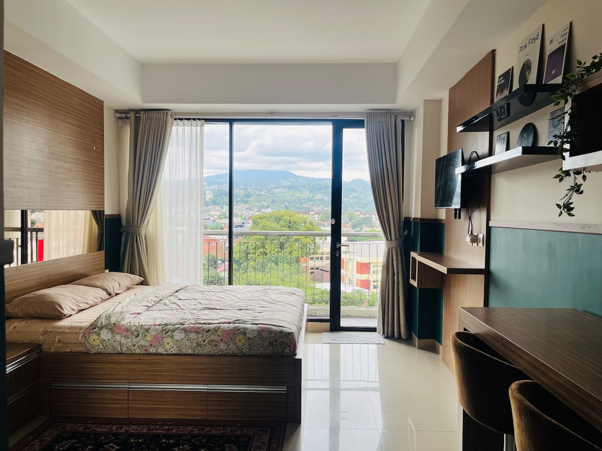 🌟 Elegante estudio Art Déco 🌟 Nuestro estudio está situado en el nivel 6 del Art Deco Luxury Hotel & Residence, con una decoración moderna y un estilo clásico que ofrece la mejor experiencia de lujo. Este estudio de primera categoría ofrece una elegante sala de estar y un balcón privado con espectaculares vistas de Bandung. La ubicación está cerca de los principales destinos turísticos de Dago y Bandung. Ideal para parejas, viajeros en solitario y viajes de negocios. Consulta nuestro perfil para unidades de 1 a 4 dormitorios y villas de lujo en Bandung