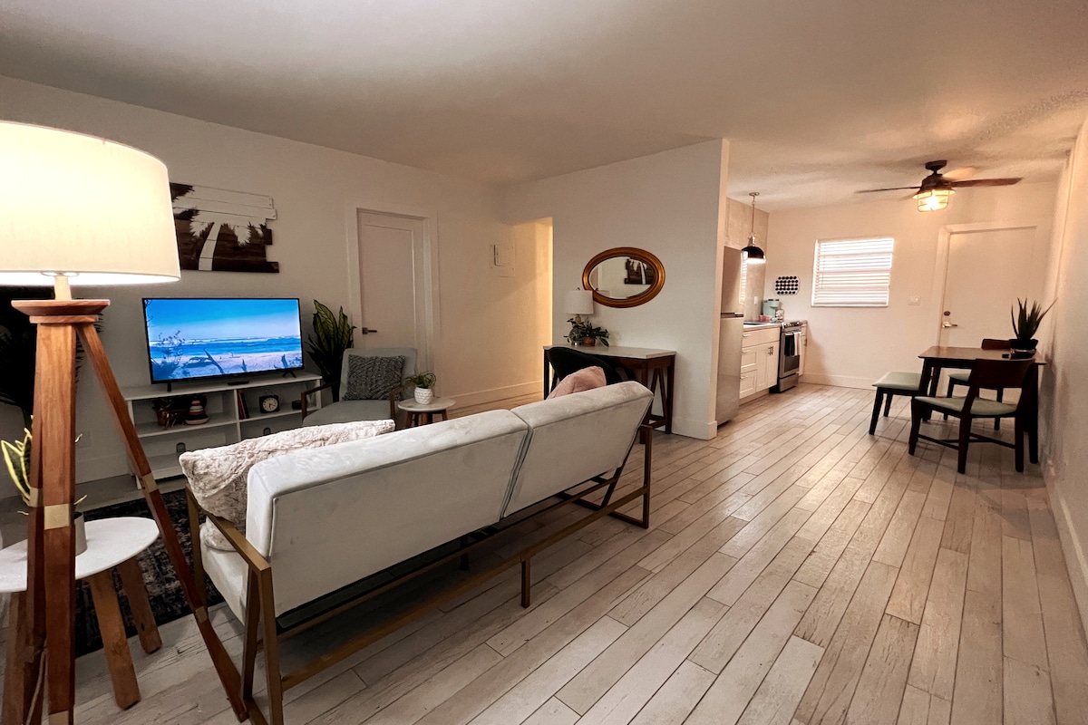 Bienvenido a tu refugio junto a la playa en Pompano Beach, a solo 1 milla de la arena. Este acogedor estudio cuenta con una cama tamaño queen, un baño renovado y una pequeña cocina. Disfruta de una televisión inteligente, Internet rápido y aire acondicionado frío o relájate en el patio privado para asar a la parrilla, tomar el sol o descansar. En las inmediaciones, descubre restaurantes locales, deportes acuáticos y golf. Con una entrada privada, una cochera cubierta (toma de corriente Nema para cargar vehículos eléctricos) y espacio para 3 coches, este estudio es tu base ideal para explorar el encanto costero del sur de Florida.