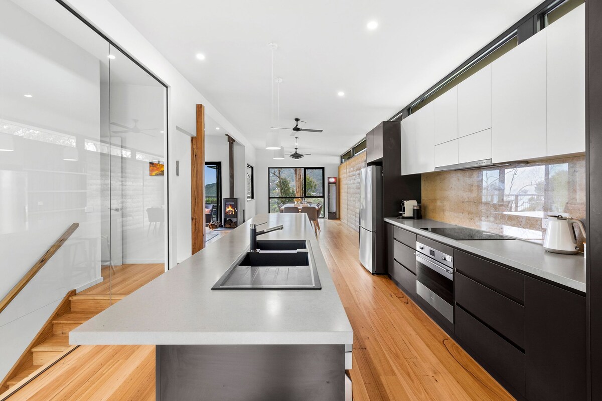 ¡No reserves una cama, reserva una experiencia! Siéntate en la terraza y disfruta de las vistas de todo el valle de Apollo Bay y el océano. Mira cómo vuelven a casa las vacas, mientras disfrutas de una ubicación ideal cerca de la playa y de las tiendas. Relájate durante tu estancia en Apollo Bay en The Cottage con una hermosa decoración moderna y luminosa, techos abovedados y acabados de calidad en todas partes. La cocina cuenta con piedra y latón cepillado, con increíbles ventanales que capturan las magníficas vistas de las colinas circundantes, el océano y la vida agrícola.