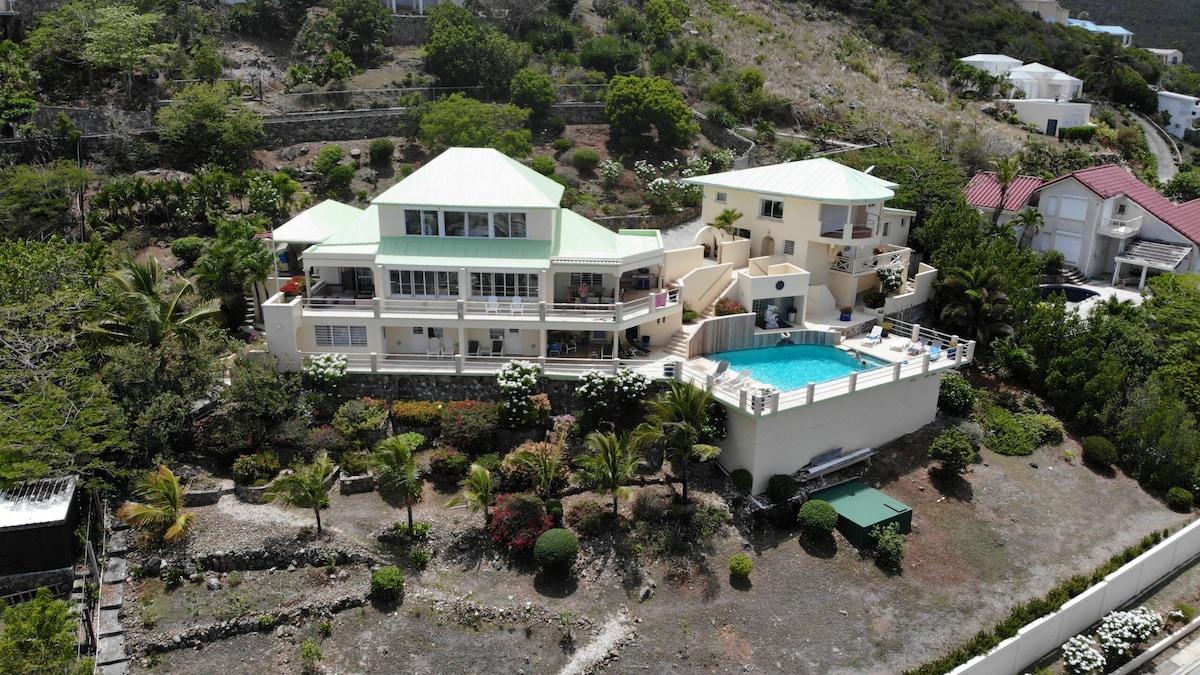 Nestled in the exclusive Mont Vernon 3, La Casa del Jefe offers a one-of-a-kind luxury experience, boasting panoramic 180-degree views that stretch from the vibrant shores of Orient Bay to the charming village of Grand Case. This elevated retreat captures the stunning vistas of Tintamarre, Pinel Island, and the shimmering waters of the Caribbean, making it one of the most breathtaking locations on the island. Step onto the expansive terrace, where sleek glass railings frame the horizon, creatin