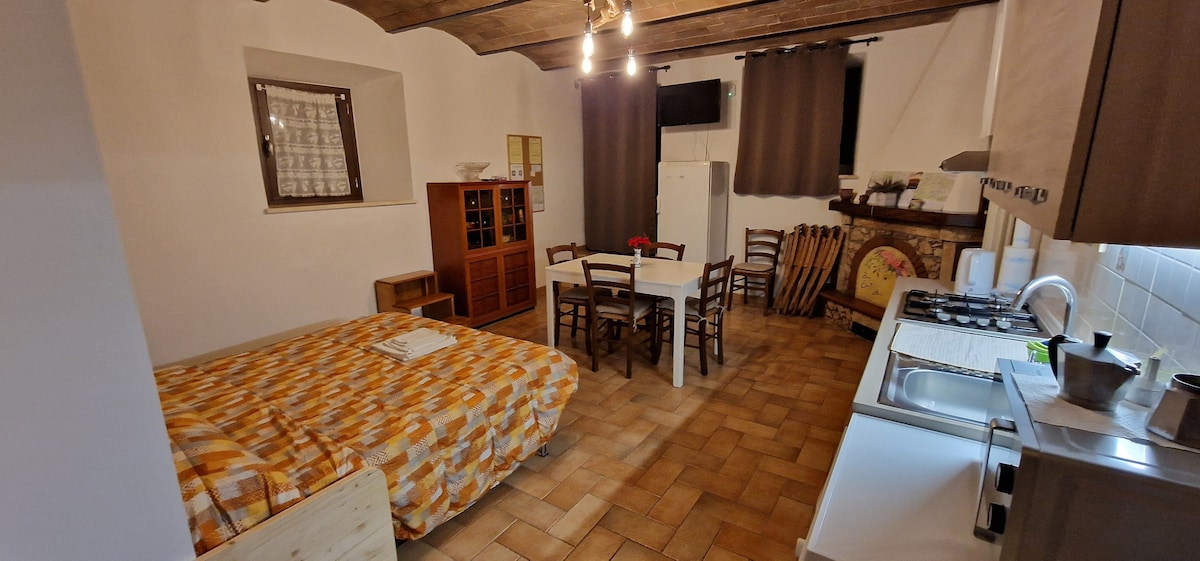 El apartamento está situado en la segunda planta y consta de 2 dormitorios (posibilidad de camas individuales o dobles bajo petición), un baño, un salón y una cocina equipada para cocinar. (Lavadora disponible de 9:00 a 20:00 en la lavandería). Estacionamiento gratuito y WiFi Ubicación estratégica para visitar los centros turísticos de la Toscana. Estamos en el campo, en el corazón de la Creta Senesi, se recomienda un coche para ser independiente y visitar la magnífica campiña toscana.