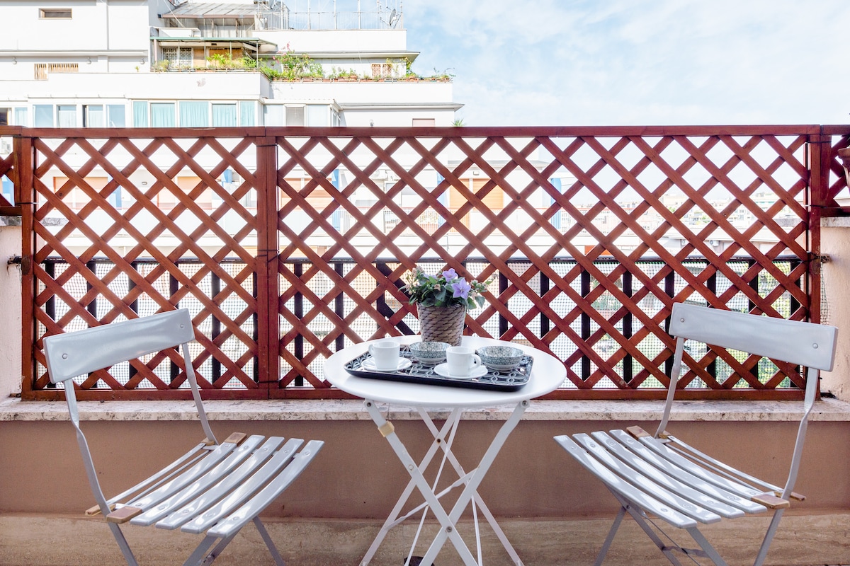 Alójate en un entorno cuyas palabras clave son funcionalidad y comodidad. Las opciones arquitectónicas y decorativas, caracterizadas por la linealidad y la sobriedad, así como por los colores suaves, serán el telón de fondo de tus momentos de relax y tranquilidad. El apartamento está a tu entera disposición. En Piazza Vittorio Emanuele II, la plaza más grande de Roma, un espléndido jardín recién reformado con zonas de juego para niños, jóvenes y adultos, la fuente de Rutelli, los Trofeos de Mario y la Puerta Mágica.