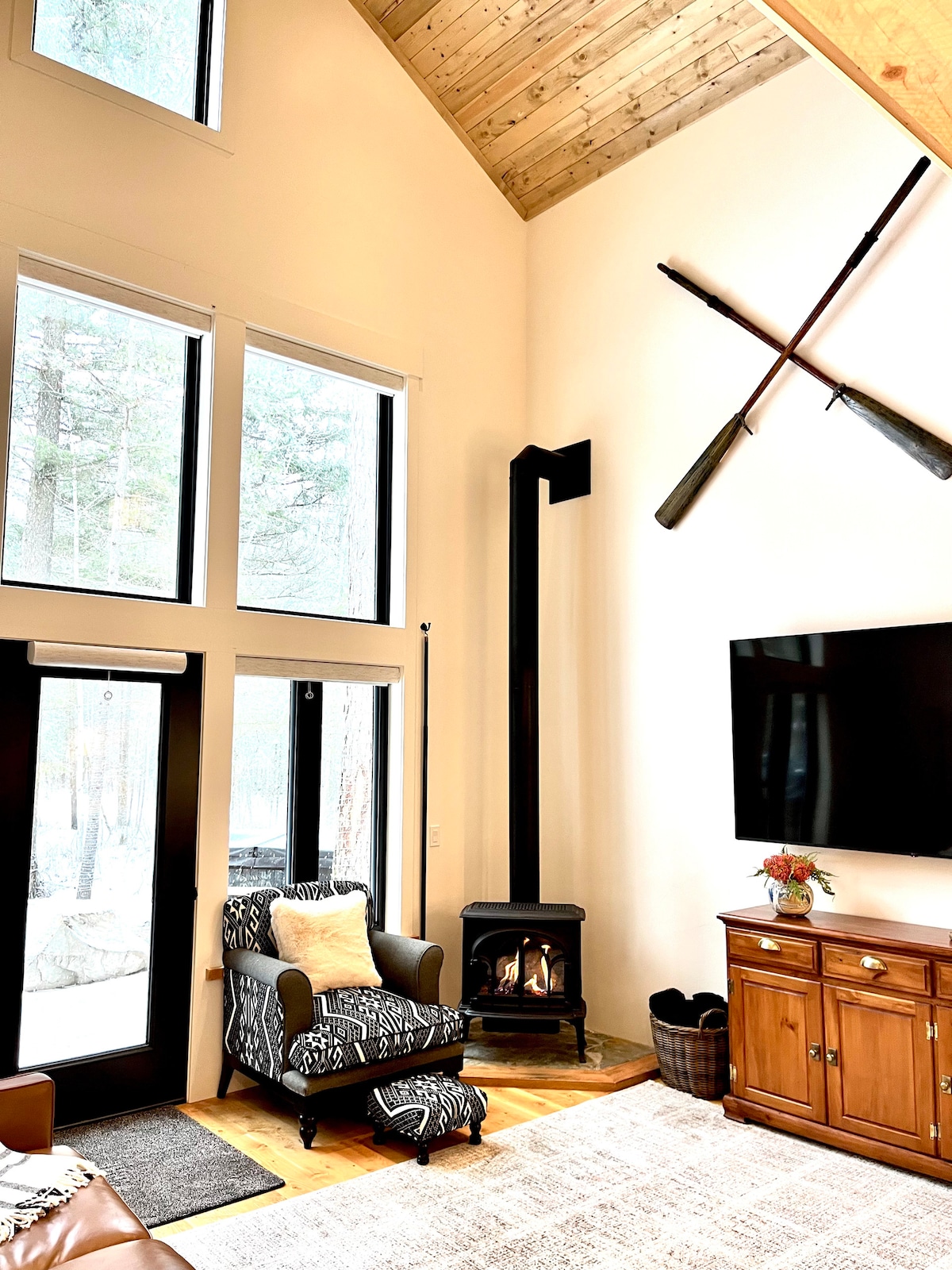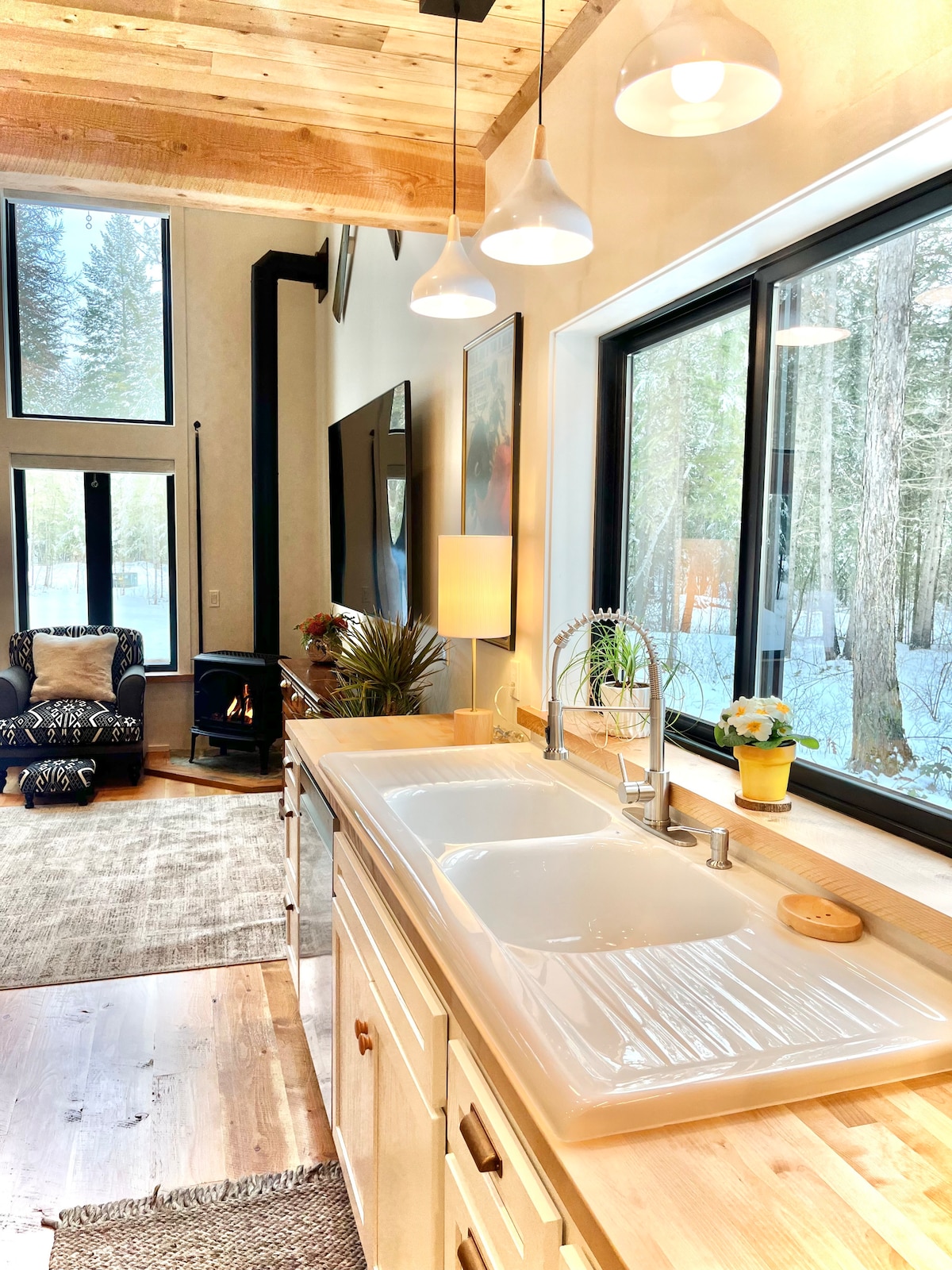 Cow Creek Cabin se encuentra en un prado tranquilo con unas vistas preciosas de Big Mountain. Está a solo dos millas del centro de Whitefish y a 15 minutos de la estación de esquí. Este tranquilo entorno de Montana es una base ideal para aventuras en Whitefish. La cabaña cuenta con amplias ventanas que traen la vista de la montaña al interior. Una estufa de leña te espera a tu regreso de un día en las pistas o senderos. La cocina está equipada con todo lo necesario para cocinar tus propias comidas. El televisor OLED está conectado a internet rápido Starlink.