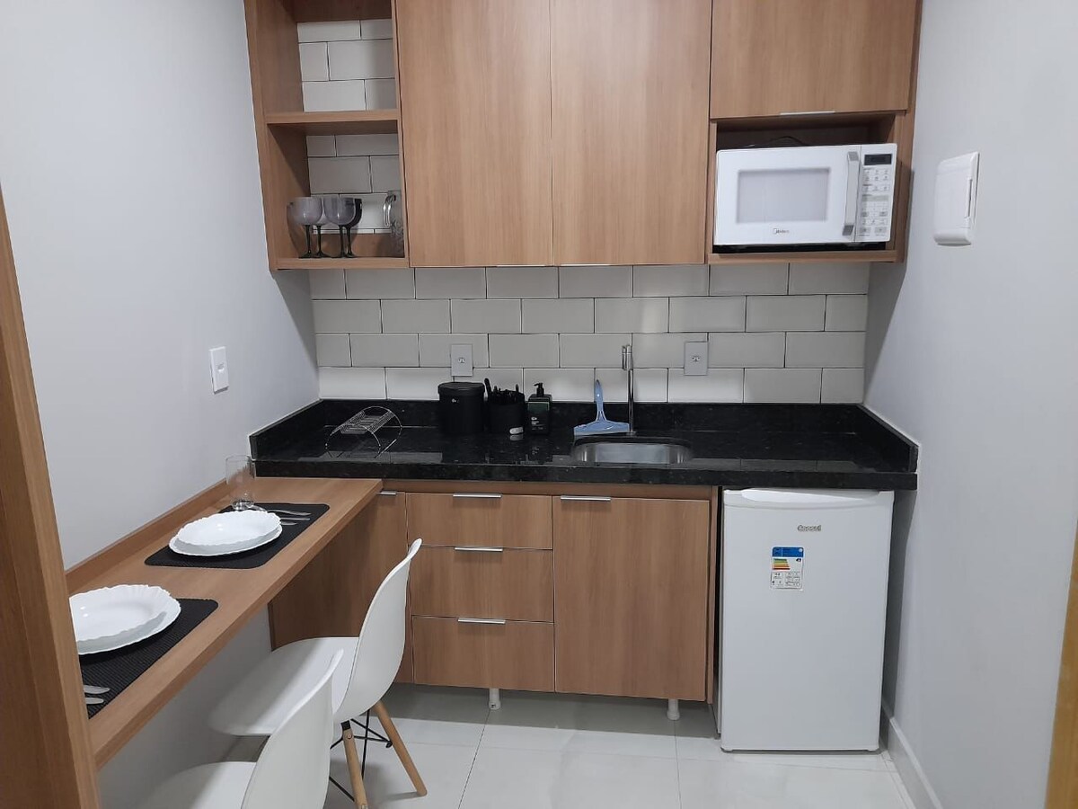 Apartamento completo en Três Ríos en Vila Isabel, sala de estar con TV de 40pulgadas y aire acondicionado, dos dormitorios con ventiladores de techo: uno con una cama doble y otro con una cama individual, cocina completa con estufa, nevera, microondas, licuadora y utensilios de cocina. Está a menos de 3 km de la estación de autobuses y a menos de 2 km de la salida BR040. Tiene mercados muy cerca, parada de autobús. Condominio con portero las 24 horas y cámaras de seguridad.