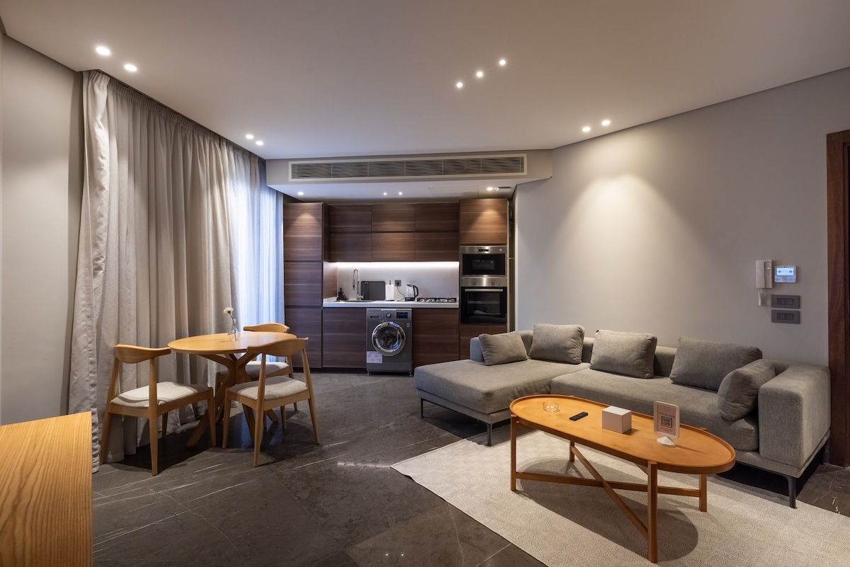 Welcome to a brand-new, beautifully designed one-bedroom apartment in The Village, Palm Hills, located literally a 2-minute walk from Point 90 Mall. Restaurants, cafés, shopping, and daily essentials are all right next door. This 80 sqm ground-floor apartment features a private garden with outdoor seating, making it perfect for couples, long or short stays, and pet-friendly living.