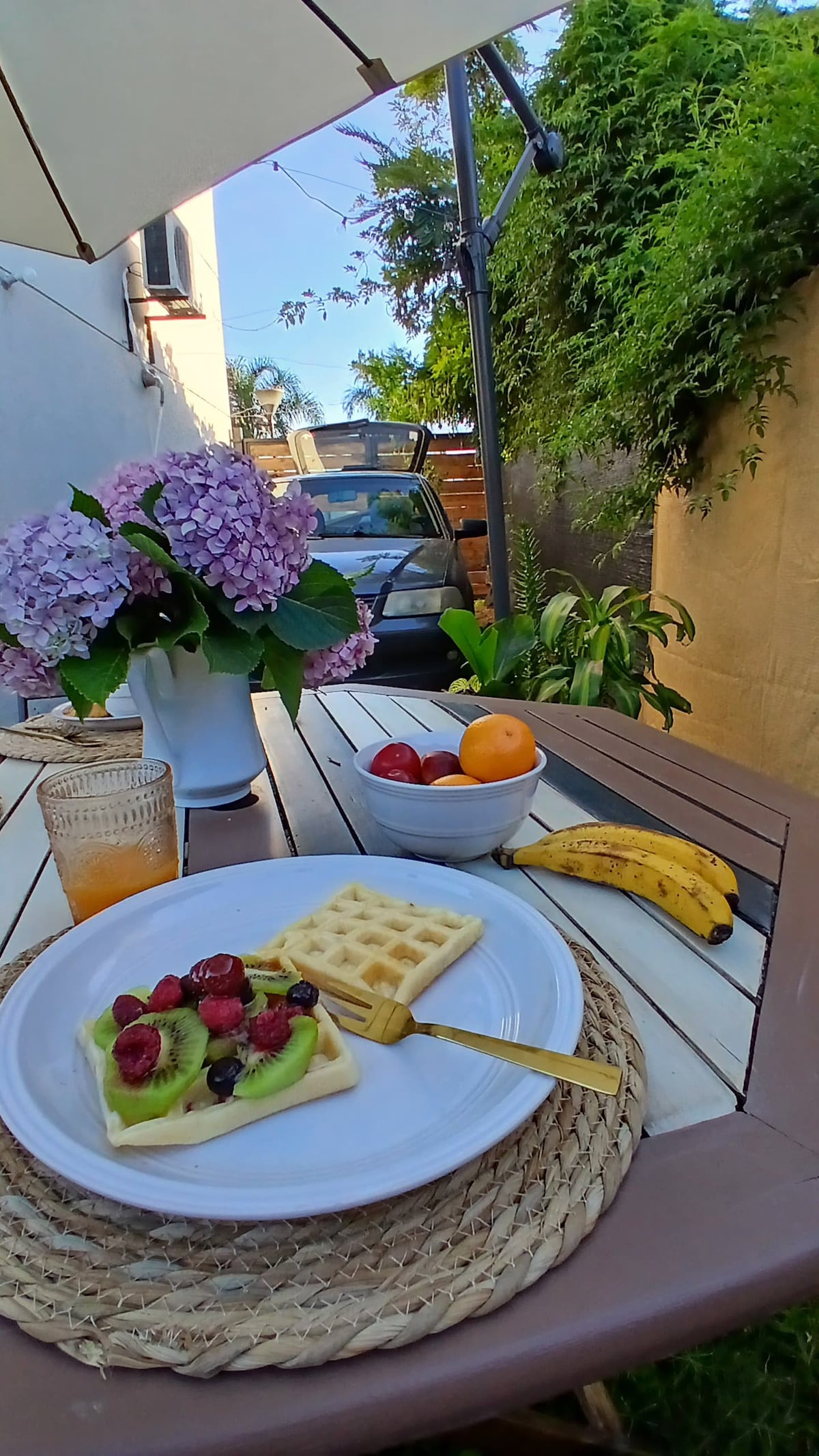 Casa de 62m² en el tranquilo barrio Jardines, Termas del Daymán. Ideal para relajarse, cuenta con living-comedor, kitchenette y cama individual con marinera. Incluye TV cable, WiFi y un dormitorio adaptable con dos camas indiv. sommier o una queen size. Parrillero techado, piscina de agua fría, área de juegos para niños y arco de fútbol. Entrada indep. para vehículos. Piscina habilitada a partir 1 de nov. hasta 15 abril. En ocasiones es compartida con otra propiedad que dispongo en el predio.