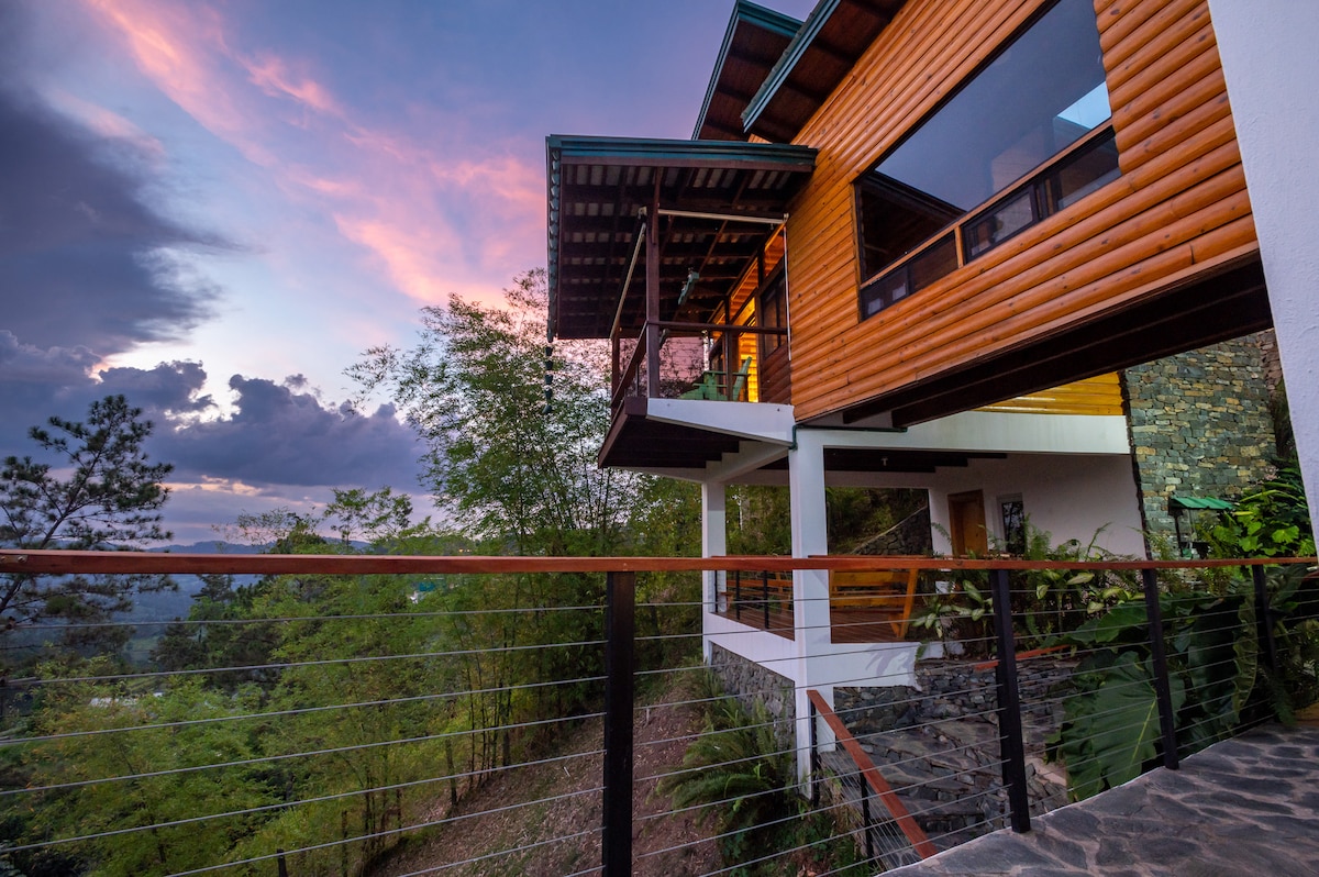 Casa ubicada en el tope de una montaña dentro de un proyecto cerrado, a tan solo 10 minutos del pueblo de Jarabacoa Diseño rústico moderno, con cristales en todas las areas sociales y las habitaciones, permitiendo la vista al imponente paisaje de la Cordillera Central de la Republica Dominicana. Nuestra casa es muy acogedora y familiar. Acceso en vehículo alto a la propiedad .