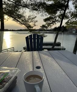 ¡Ven y quédate en nuestra casa de campo frente a la playa, bellamente renovada y para *toda temporada*, y disfruta de una impresionantes vistas panorámicas de la bahía Georgiana! Descubrirás la casa de campo situada en la cima de una duna de arena, justo en una de las playas de agua dulce más impresionantes del mundo. Esta rara ubicación alberga una terraza cubierta privada que se cierne sobre la arena blanca, en una casa de playa más cerca de la bahía que en cualquier otro lugar. Los huéspedes de verano también disfrutan del uso de una piscina climatizada de agua salada y una gran terraza del centro vacacional creada por Paul Lafrance.