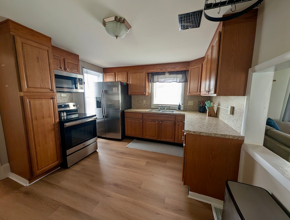 ¡Esta acogedora casa con porche delantero cubierto y terraza trasera abierta es un gran lugar para disfrutar de los amaneceres del campo o las tardes relajadas! Un lugar asequible y cómodo para pasar el fin de semana o mientras disfrutas de las atracciones de la zona. Con Internet de alta velocidad, se ha convertido en un gran lugar para alojarse para personas de negocios y enfermeras que viajan. Es un lugar en el que puedes sentirte perfectamente «como en casa». 🙂