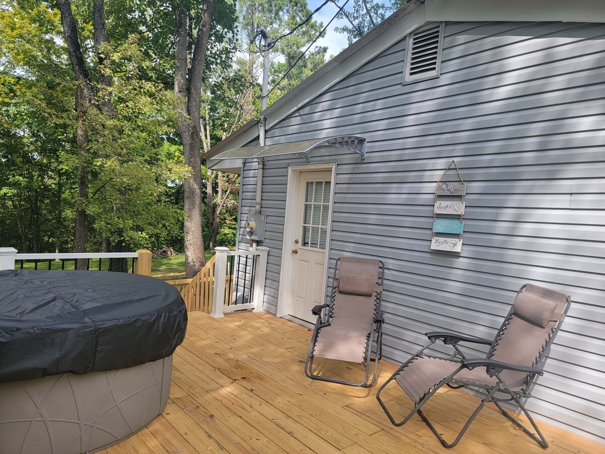 Calfkiller Cottage se encuentra justo al lado del río Calfkiller. Ubicado en el centro de TN, está a 2 horas en auto de numerosas atracciones turísticas. Está cerca de muchas cascadas, paseos en bote, kayak, pesca y senderismo. Hay una bañera de hidromasaje en la terraza justo fuera del primer dormitorio, que tiene una cama queen. La fogata está aislada y ofrece vistas al río. Si estás buscando un lugar para relajarte después de un día de aventuras, ¡este es tu lugar!