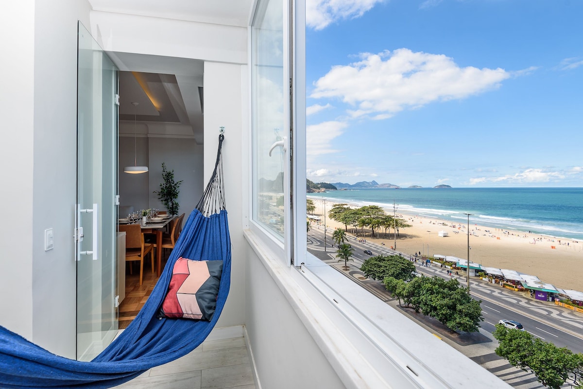 Apartamento de lujo en la Avenida Atlántica con hermosa vista al mar en el mejor tramo de Copacabana y muy bien ubicado, cómodo, completo, reformado, con cerradura electrónica, wifi, smart tv y cerveza, ubicado en la playa más famosa de Río de Janeiro. Luxury apartment on Avenida Atlântica with beautiful sea view in the best stretch of Copacabana, comfortable, newly renovated, with wifi, smartv and beer, located on beachfront of the most famous beach in Rio de Janeiro
