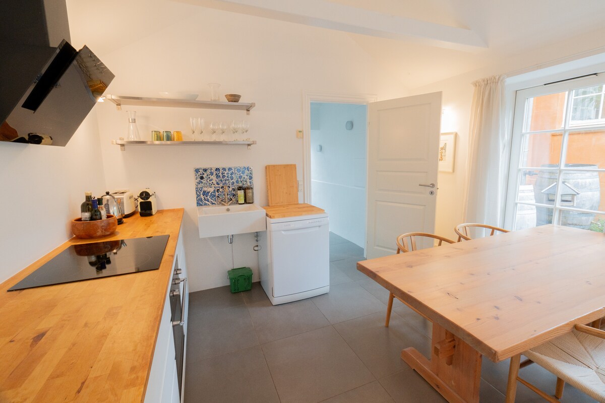 Acogedora casa de huéspedes separada de la casa principal con entrada privada y terraza al aire libre. Situada a poca distancia a pie de la playa (5 minutos), restaurantes (5 minutos), tiendas de comestibles (5 minutos), centro comercial Waves (20 minutos) y estación de tren (20 minutos). Copenhague está a solo 20-25 minutos en tren. Aparcamiento gratuito, cocina totalmente equipada, dormitorio con cama doble (140x200), un sofá cama disponible en la sala de estar, baño con suelo radiante, lavavajillas, lavadora, secadora, wifi gratuito y TV inteligente.