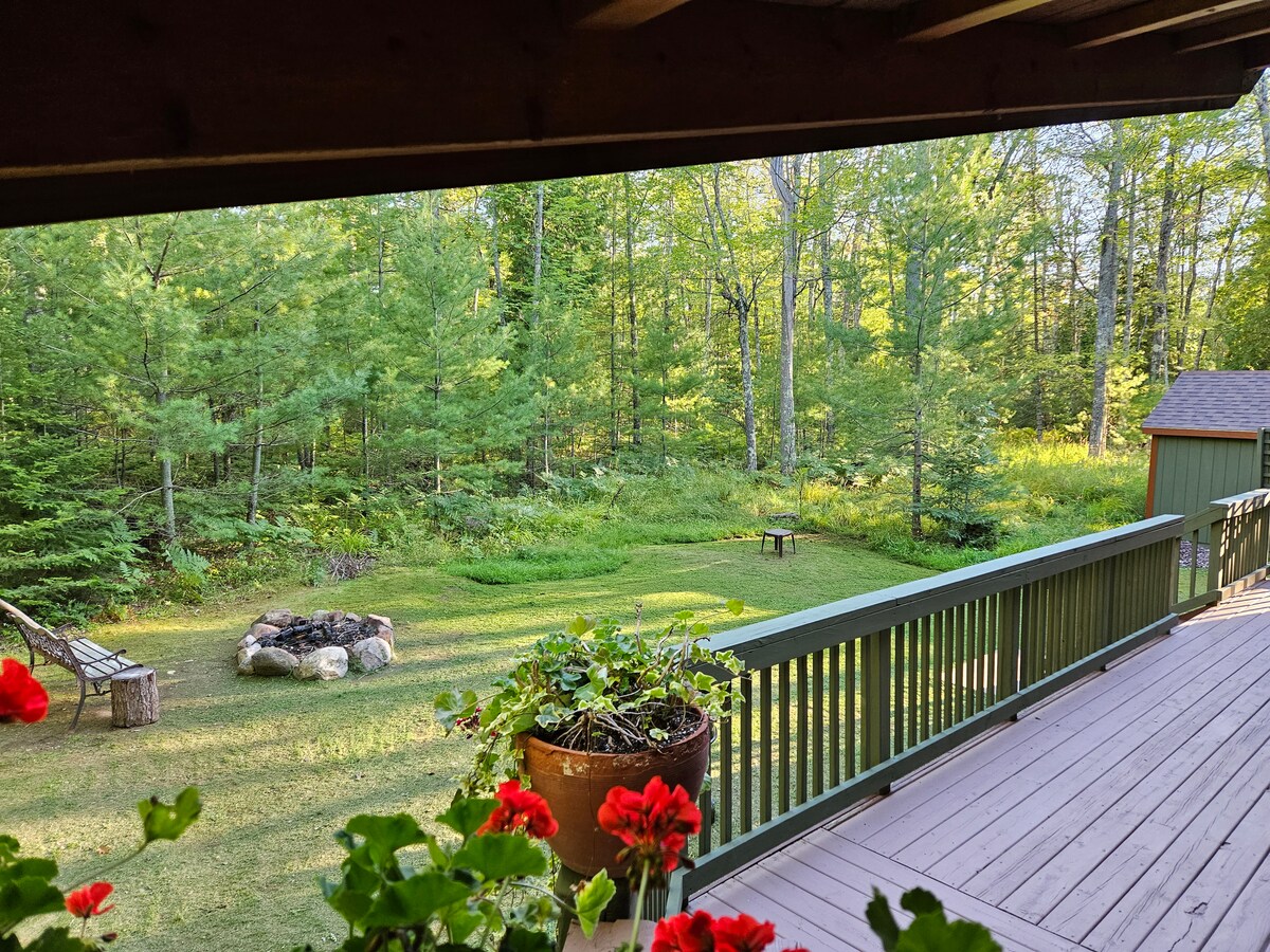 ¡Completamente remodelado de la cabeza a los pies! Situado a menos de media milla del sistema de senderos, a 2 millas de las tiendas del centro histórico, en las afueras de la ciudad (municipio de Ironwood = agua potable excelente), a pocos minutos de Big Powderhorn Mountain y Copper Peak, a poca distancia a pie de Gogebic College y Mount Zion, a 17 millas del lago Superior, gran patio privado arbolado con chimenea en verano, aparcamiento privado, 1 garaje si es necesario en invierno. ¡Un desayuno ligero de panadería incluido en tu estancia!