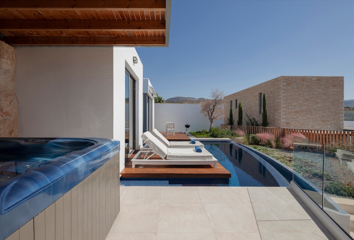 Increíbles vistas al mar y a las montañas. Todos los bungalows con piscinas privadas, amplios dormitorios en suite y patios alrededor de la piscina y la casa. A solo 900 metros del centro vacacional Coral Bay - Chipre. Dirigido por los propietarios, hospitalidad y atención local, 24/7. Adecuado para familias y personas mayores