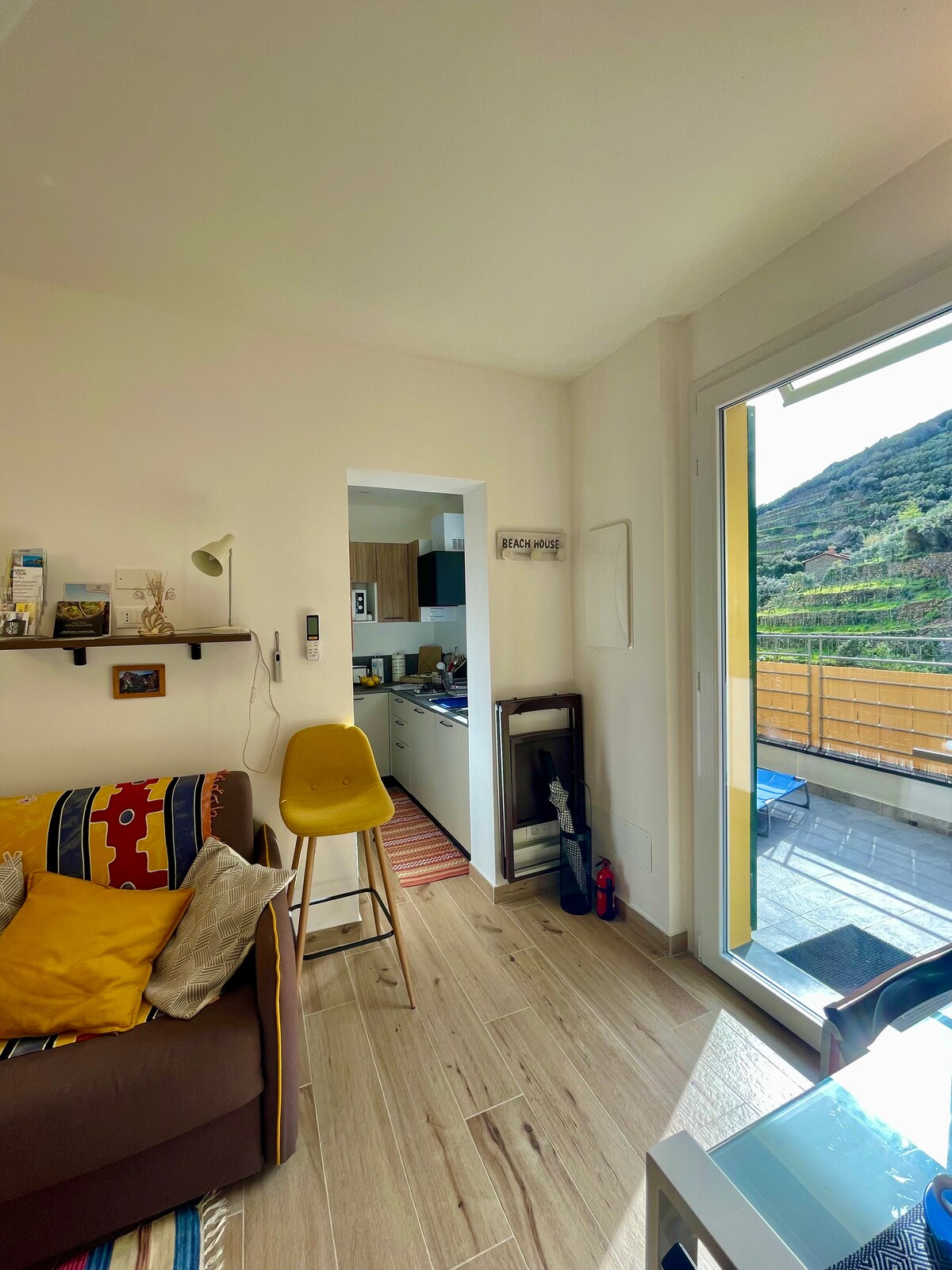 L’appartamento è un rifugio luminoso e accogliente,ideale per coppie,famiglie o amici che vogliono vivere le 5 Terre con calma e comfort. All’interno troverete una cucina moderna e spaziosa attrezzata per preparare colazioni ,cene o aperitivi vista mare sulla terrazza privata con lettini prendi sole per il relax dal rientro delle vostre attività. 1 camera matrimoniale fornita di biancheria con un lettino per bambini In sala trovere un divano letto per 2 persone