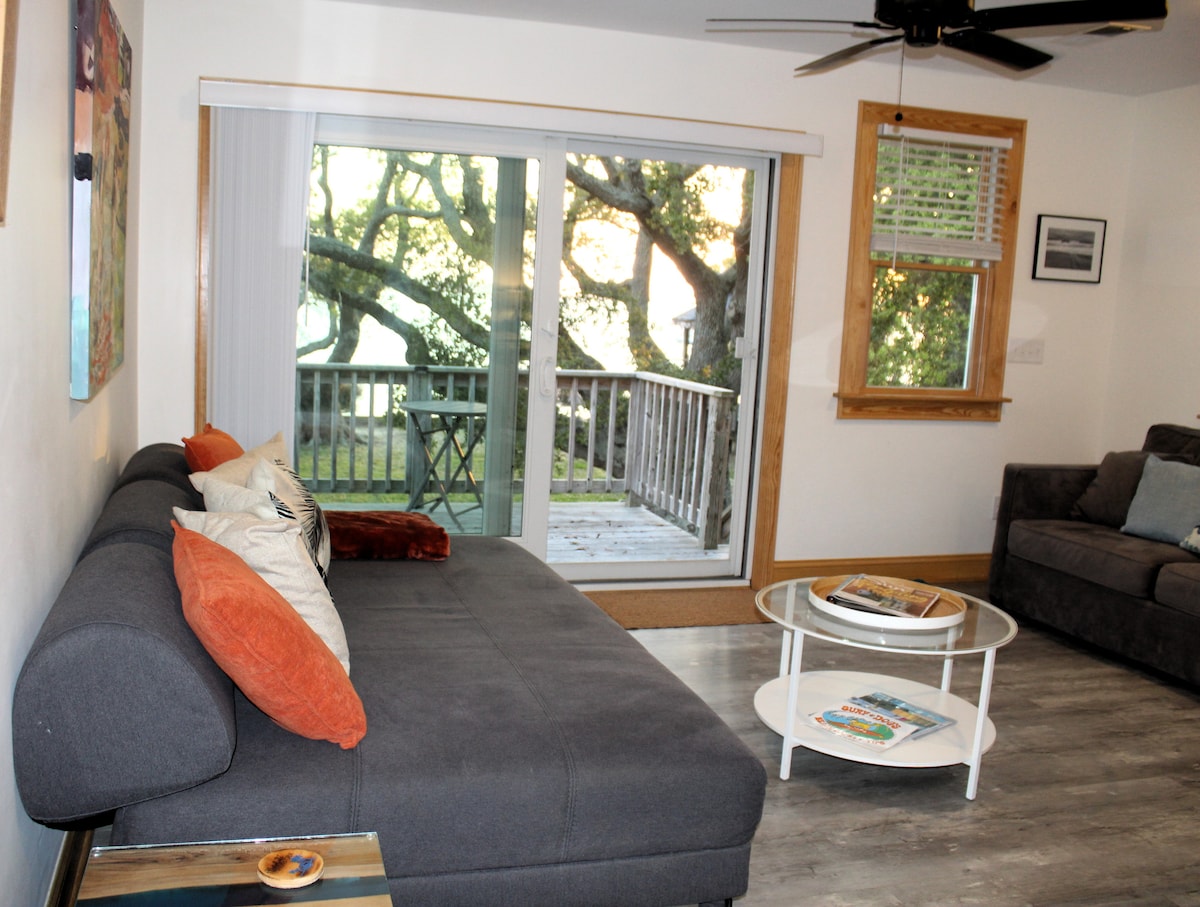 ¡🏝️🌞🐬 Desconecta de la rutina en esta casa de playa única y relajante ubicada en el bosque en el estrecho de Albemarle! ¡Esta joya oculta ofrece una combinación única de escapada rural y playa! La vida silvestre es realmente abundante en esta escapada romántica o vacaciones familiares: ver delfines, nutrias, tortugas, etc. ¡Disfruta de 3 acogedoras habitaciones, un nuevo jacuzzi, muelle privado, kayaks y un balcón personal en cada habitación con vistas increíbles! Convenientemente ubicada entre el centro de la ciudad de Elizabeth y los Bancos Externos. ¡Te esperan relajación y serenidad!🌊🏖️☀️