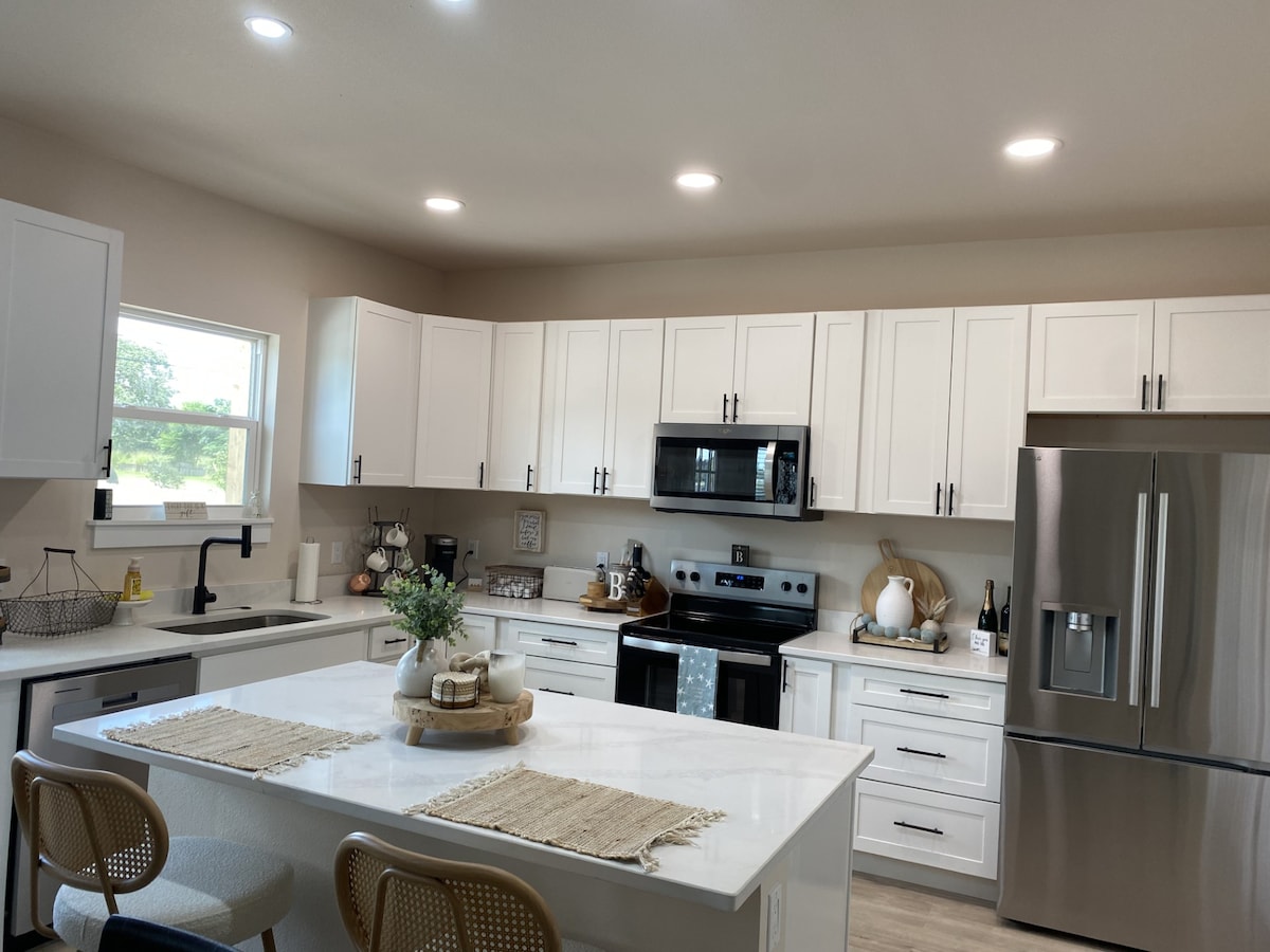 Enjoy our comforting and relaxing completely remodeled modern farmhouse. Nearby you’ll find restaurants, bars, parks, museums, galleries, event center, marina, and the downtown beach with promenade. Great views of birds from the patio. New appliances, modern spa bathroom, blackout curtains, 2 HD TVs, Roku/streaming services, USB ports, office space with fiber WiFi, and sleeper sofa. Private patio with outdoor hot/cold shower, glider swing, bistro set, grill, mist fan & herb/pollinator garden.