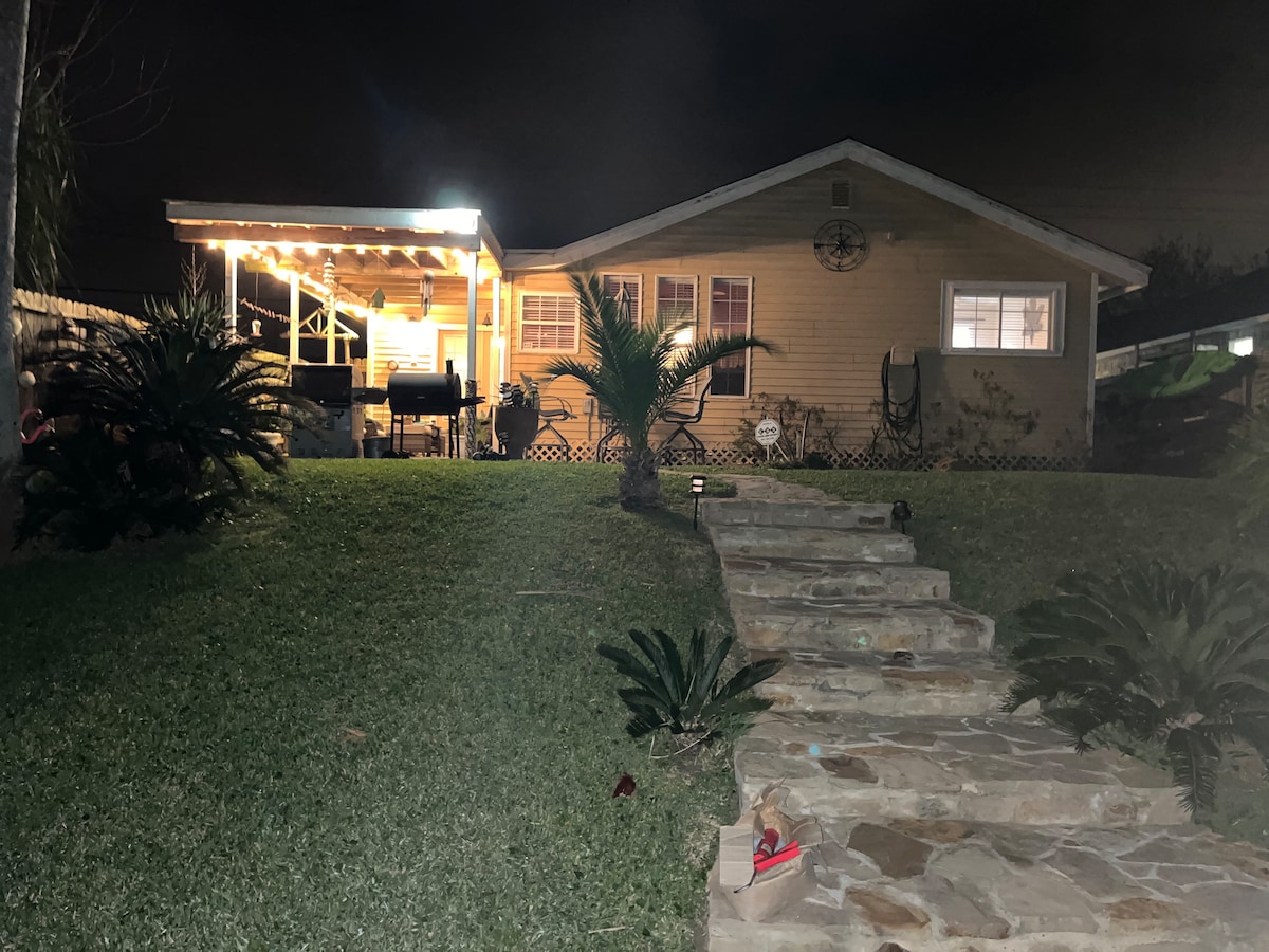 Casa privada 3/2 muy limpia y cómoda en un canal frente al mar junto a la bahía de Laguna Madre. Seguimos el proceso de limpieza avanzada en 5 pasos de Airbnb. Tenemos cámaras de seguridad y sistema de alarma doméstica. El patio trasero es un éxito con todos, muy relajante. Puedes pescar en el muelle del patio trasero o coger los kayaks. La playa de Mustang Island está cerca. Proporcionamos chalecos salvavidas para los kayaks, pero no nos hacemos responsables de los accidentes. ¡¡NO se permite la pesca de fondo!! Traiga sus propias cañas, anzuelos, corchos y cebos. Tarifa de mascotas 40 $ por mascota
