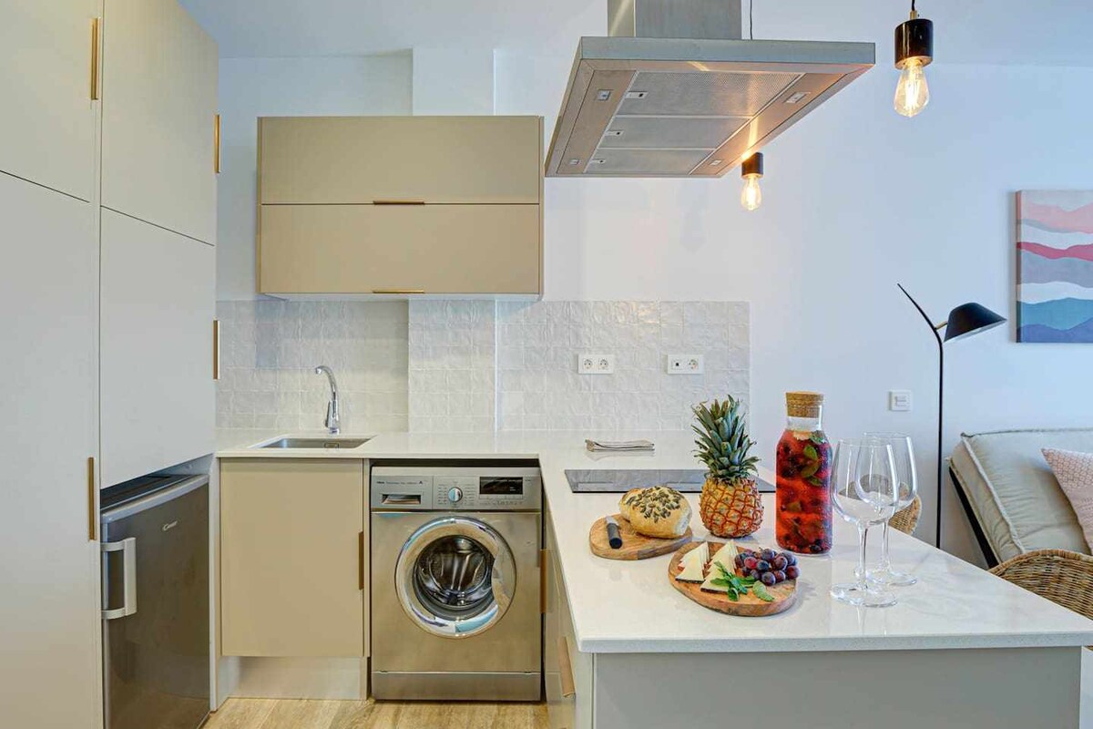 Apartamento exclusivo, con encanto y comodidades, para una pareja, cerca de las playas y del centro. Con un amplio dormitorio, con cama doble extra grande y espectaculares vistas a ambos lados del dormitorio. 2 hamacas, wifi, 2 Televisores de 32", Android TV con NETFLIX, HBO, PRIMEVIDEO, YOUTUBE.. Incluido en cada estancia: Toallas: 2 toallas de ducha + 1 toalla de lavabo por persona Sábanas: 1 juego de sábanas para una semana y 2 juegos para más de una semana Papel higiénico: 2 rollos por baño