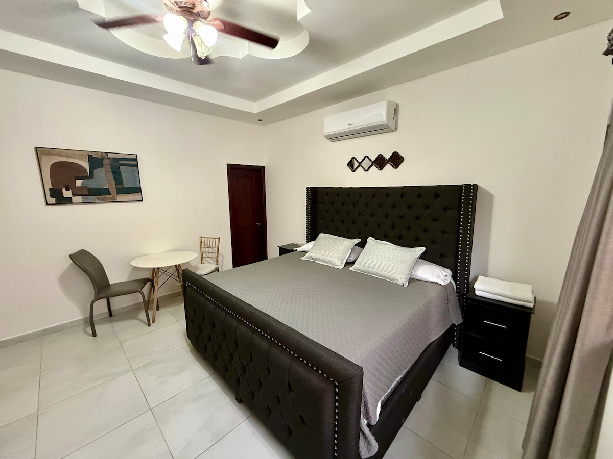 1 habitación privada, incluye cama doble, baño privado, espacio de oficina, televisión por cable e Internet, aire acondicionado con acceso al patio cerca del aeropuerto y el hospital. Ubicado en una comunidad cerrada privada y de alta gama. 1 habitacion privada, incluye una cama Doble, baño privado, oficina, cable e internet, A/C con acceso a patio cerca del aeropuerto y el hospital. Ubicada en residencial privada e exclusiva.