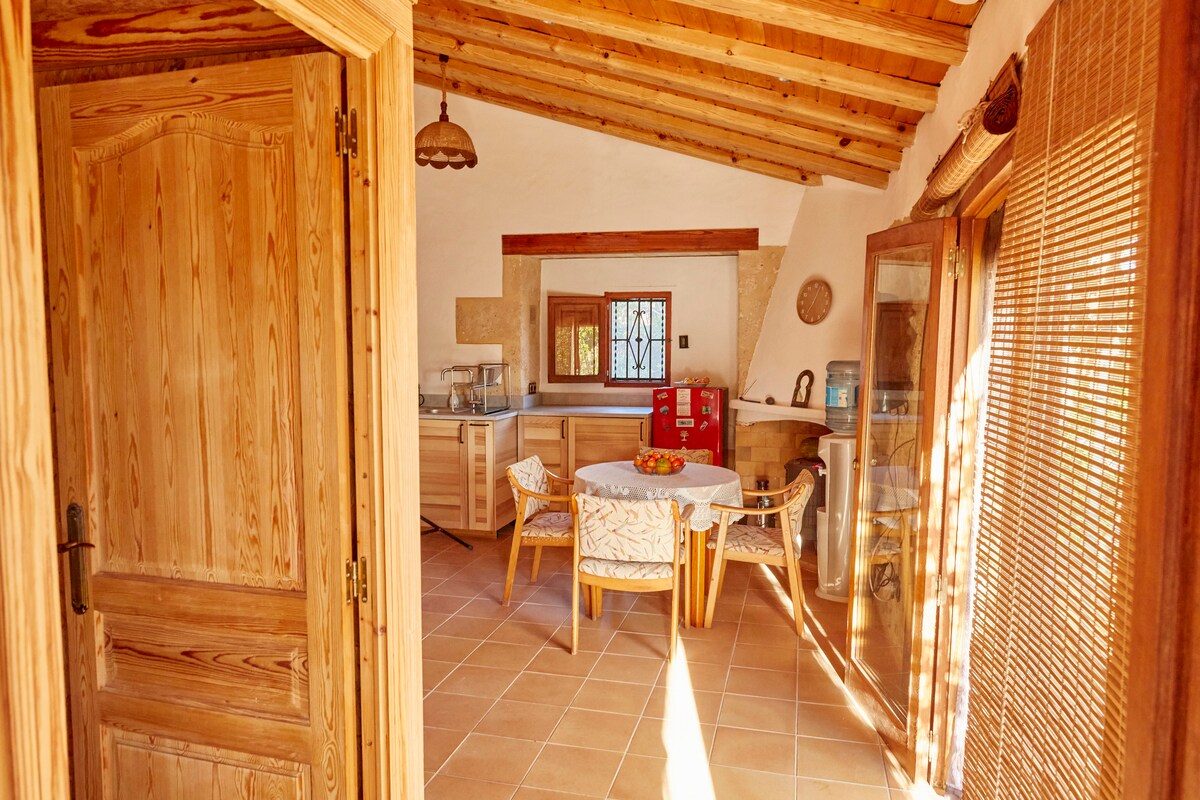 In one part of Masia del Romeral, there is a self-contained apartment with two bedrooms, each with a 150 cm bed. One bedroom also has a 90 cm bed. The kitchen area includes a sofa bed for comfort, but it is not considered an official sleeping place. The apartment has a kitchen with dining area, a bathroom with shower, and a private patio. 6 × 12 m pool (may-oct)shared with the host family. One bedroom has air conditioning, the other has a fan. Registration number pending: GVRTE/2025/4909740
